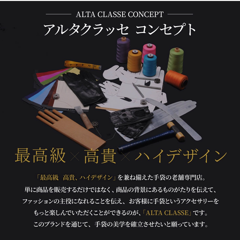 | サイズ | 男性用22cm(S), 23cm(MS), 24cm(M) 【アルタクラッセ グローブのサイズについて】アルタクラッセのグローブは、よりフィット感を出す為、専用型(抜型)を使用しております。革の性質上、多少伸びますが、一般的な革手袋のサイズより多少きつく感じる事がございます。 |