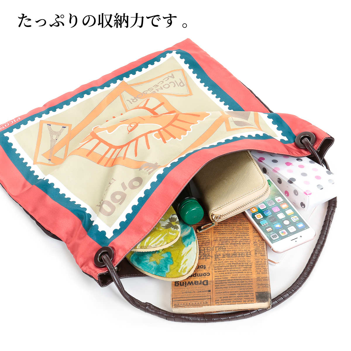 | 商品紹介 | 毎シーズン柄が増えている、人気のスカーフ柄バッグ。いくつ持ってもたのしい、ファッションに合わせて使えるバッグです。肩から掛けてすっきり持てるデザインです。 |