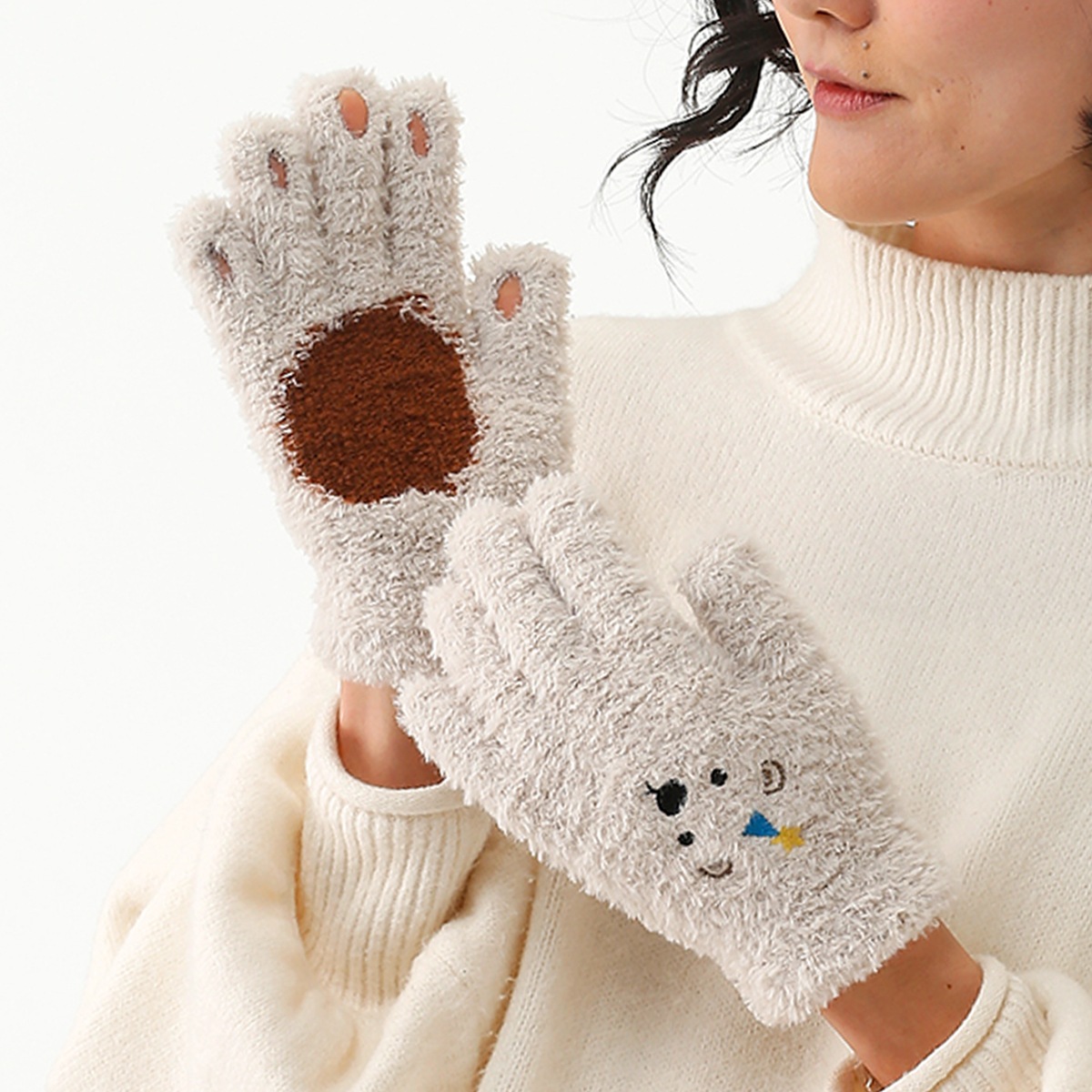 | 商品名 | ユビデル 指がでる アニマル柄ニット手袋 |