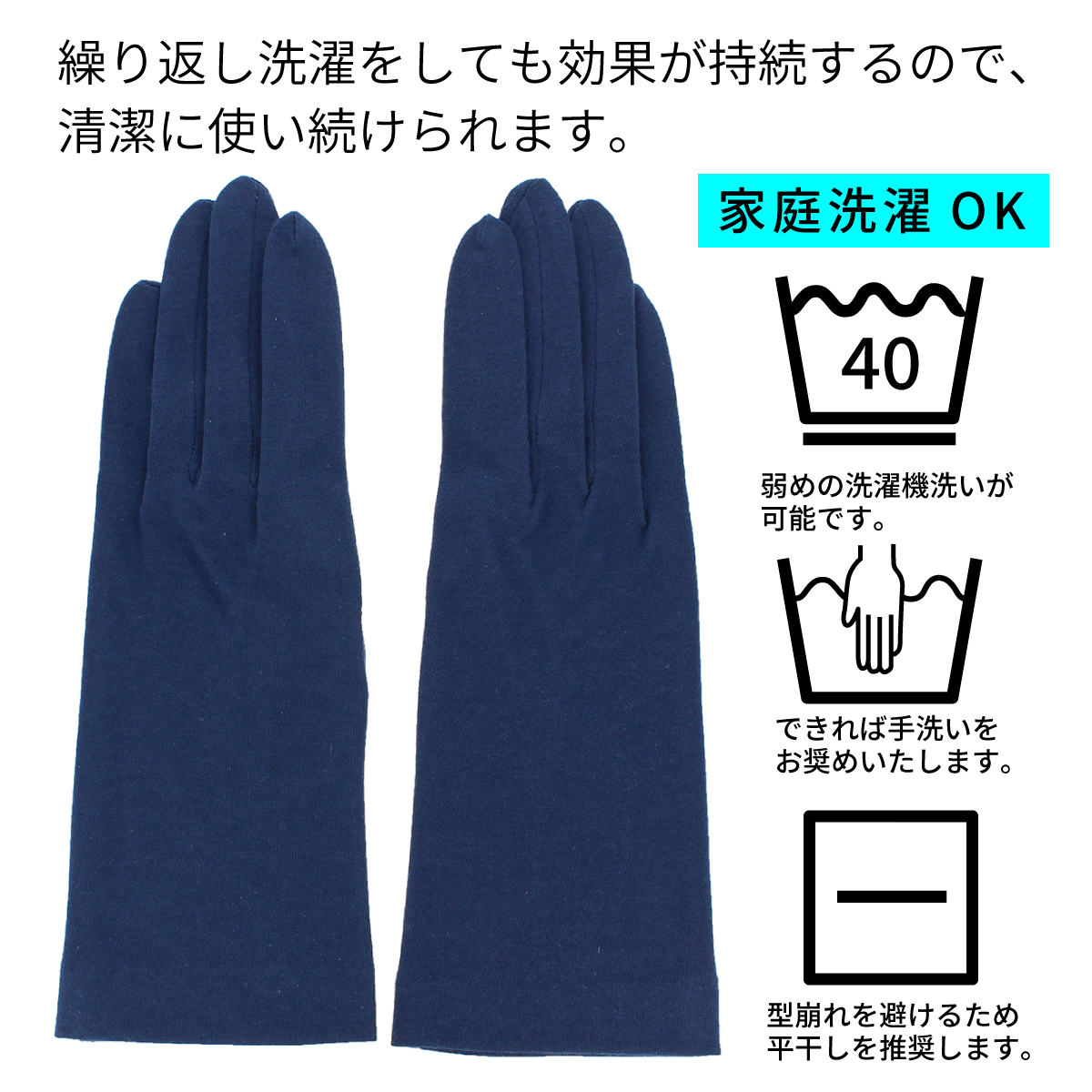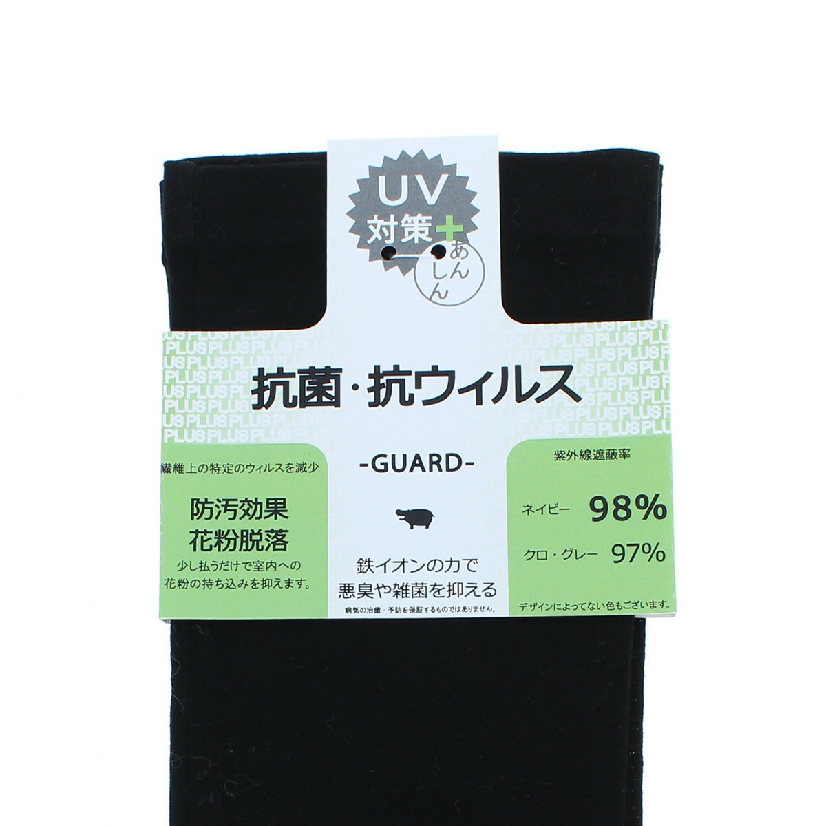 ウィルスや細菌を減退させる効果のある特別な触媒で加工した特殊な生地を使用したUV手袋。帯電防止効果もあり、花粉が脱落しやすく花粉症対策にも。 安心して快適に過ごすためには、生活空間にある素材の抗ウイルス化がリスク軽減につながると期待されています。 電車での移動や公共機関をご利用の際のウイルス対策にも最適です。 綿100%なので繰り返し洗えて、洗っても効果が弱まりません。 (洗濯テスト10回実施の結果) もちろん十分なUVカット効果もあり、通常の紫外線対策にも有効です。 五本指タイプなので、指先までしっかり日光やウイルスから身を守ります。 ※ウイルスや細菌による感染症を予防するものではございません。 材質:綿100% 遮蔽率:ブラック97.7%, グレイ97.1%, ネイビー98.0% 原産国:日本(香川県産)