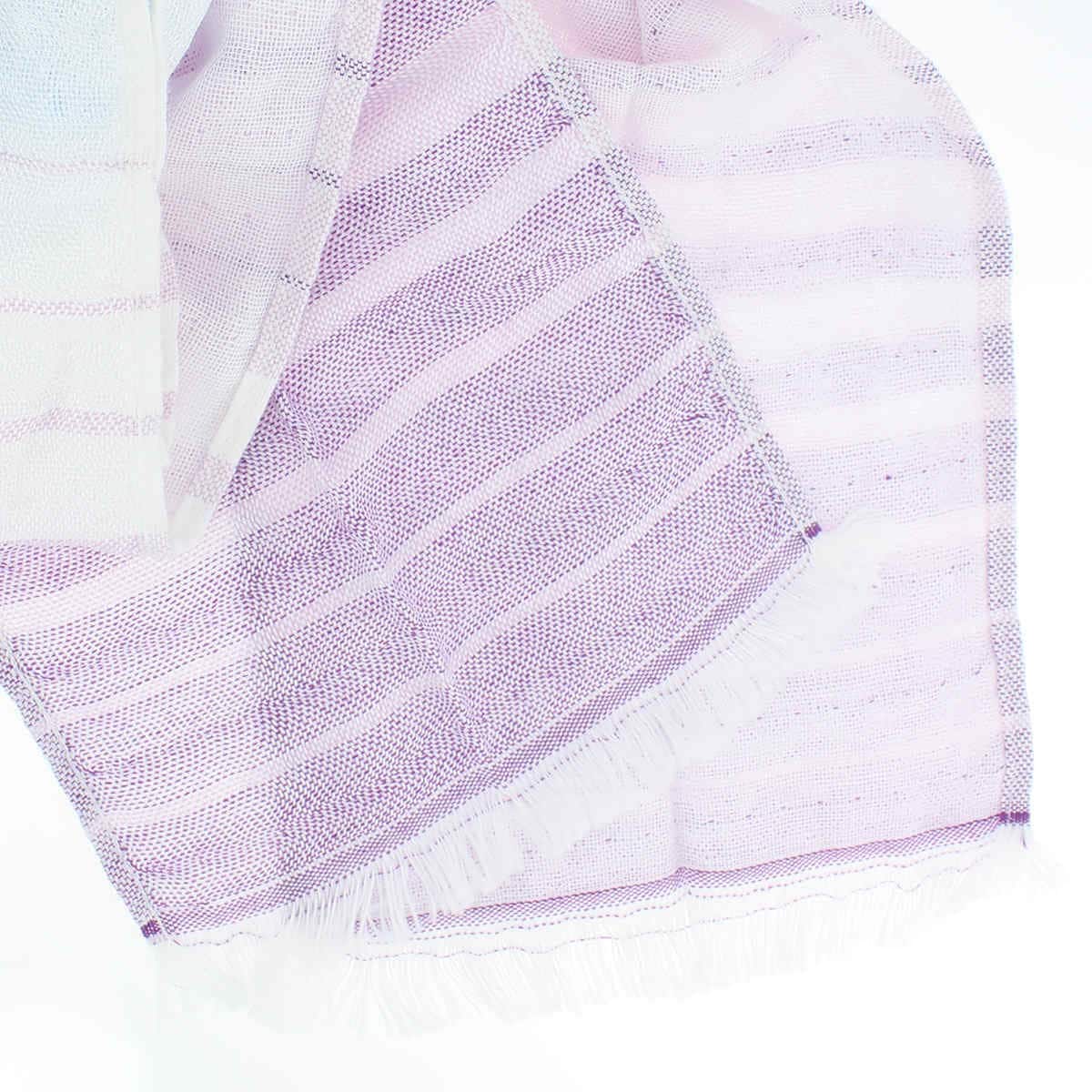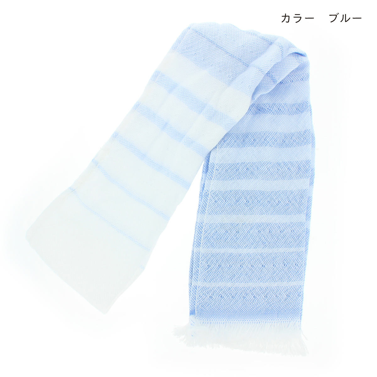 特殊な糸「クール糸」が織り込まれているので、接触冷感作用によって表面に触れるだけで冷たく感じられるタオルをマフラーにしました。