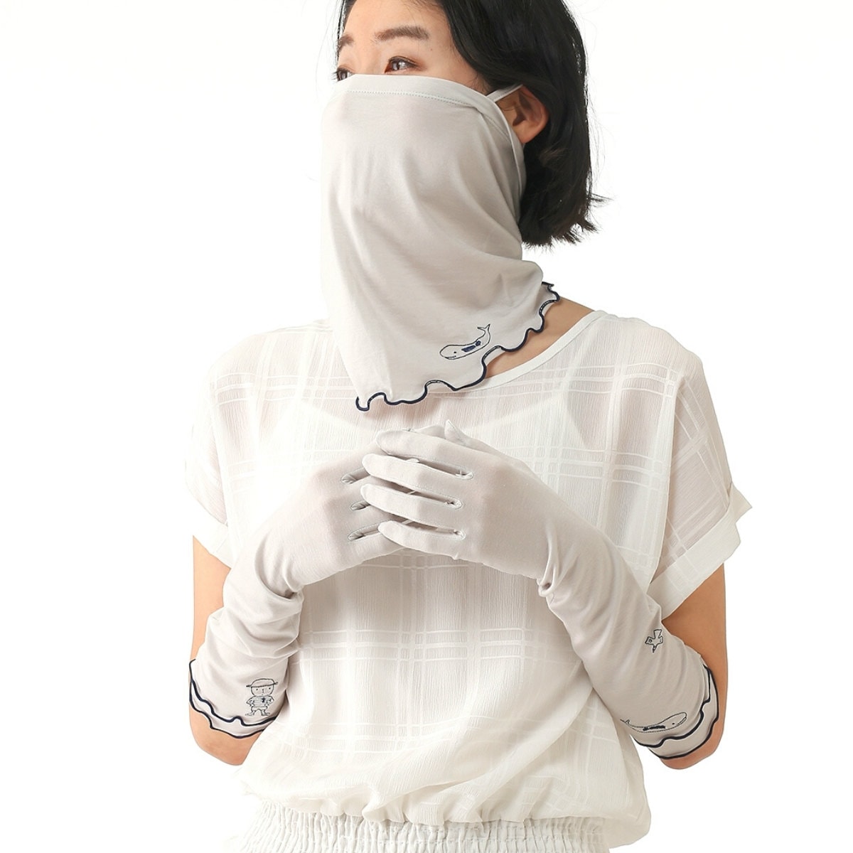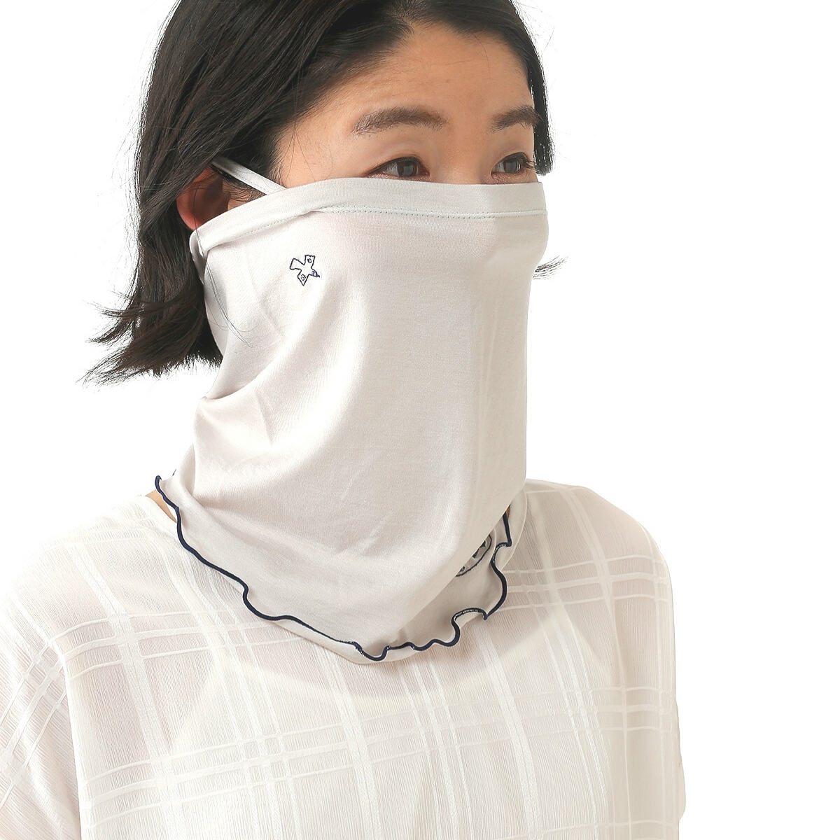 ループを耳にかけてマスク代わりに口を覆うことが出来ます。ストレッチ性のあるひんやりした素材を使用しているので、ゴルフ・テニス・ランニング・アウトドアなど様々な場面で活躍します。1141PI467のUV手袋とお揃いでお使い頂けます。(遮蔽率:ブラック99.6%, L/グレー79.1%, S/ピンク77.7%, ブルー97.6%)