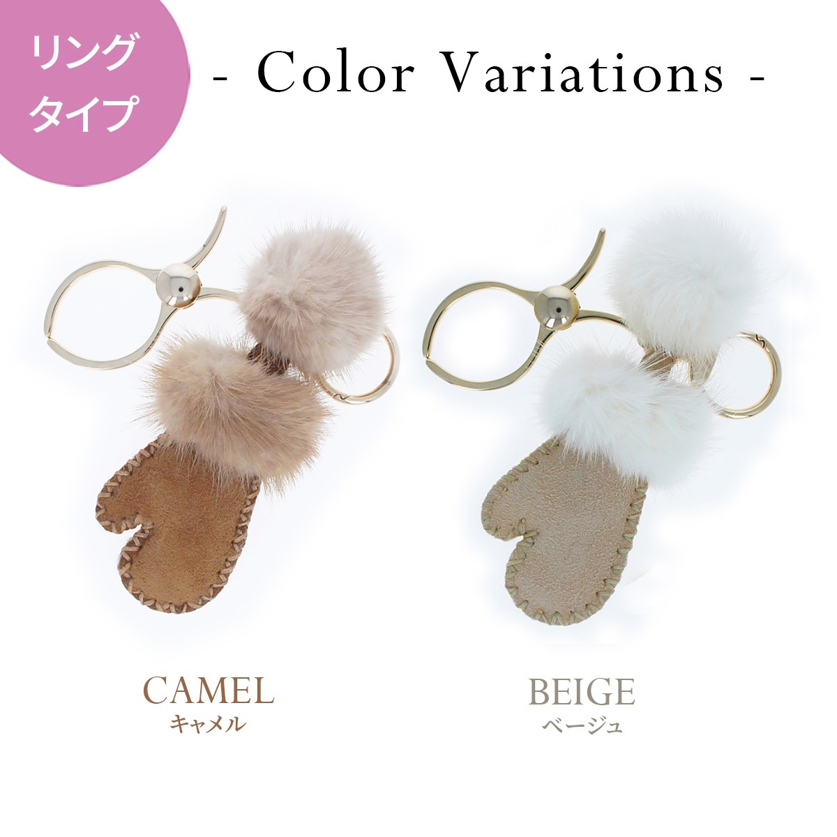 素 材:毛皮(リングタイプ:ミンク、チェーンタイプ:ラビット)・羊革・亜鉛合金