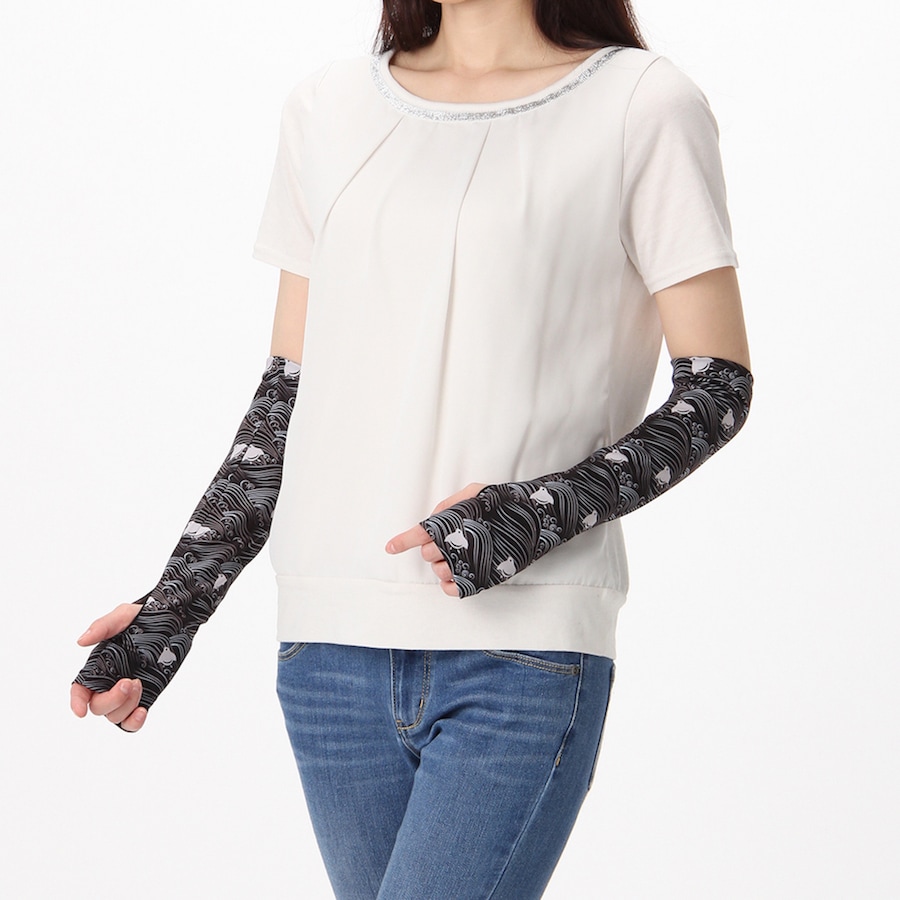 吉田手袋オリジナル【和柄シリーズ】です。春柄・夏柄2種類のアームカバー。春は桜・七宝・鯉、夏は金魚・千鳥・富士山をモチーフに、日本の四季をイメージしました。素材:ポリエステル100%