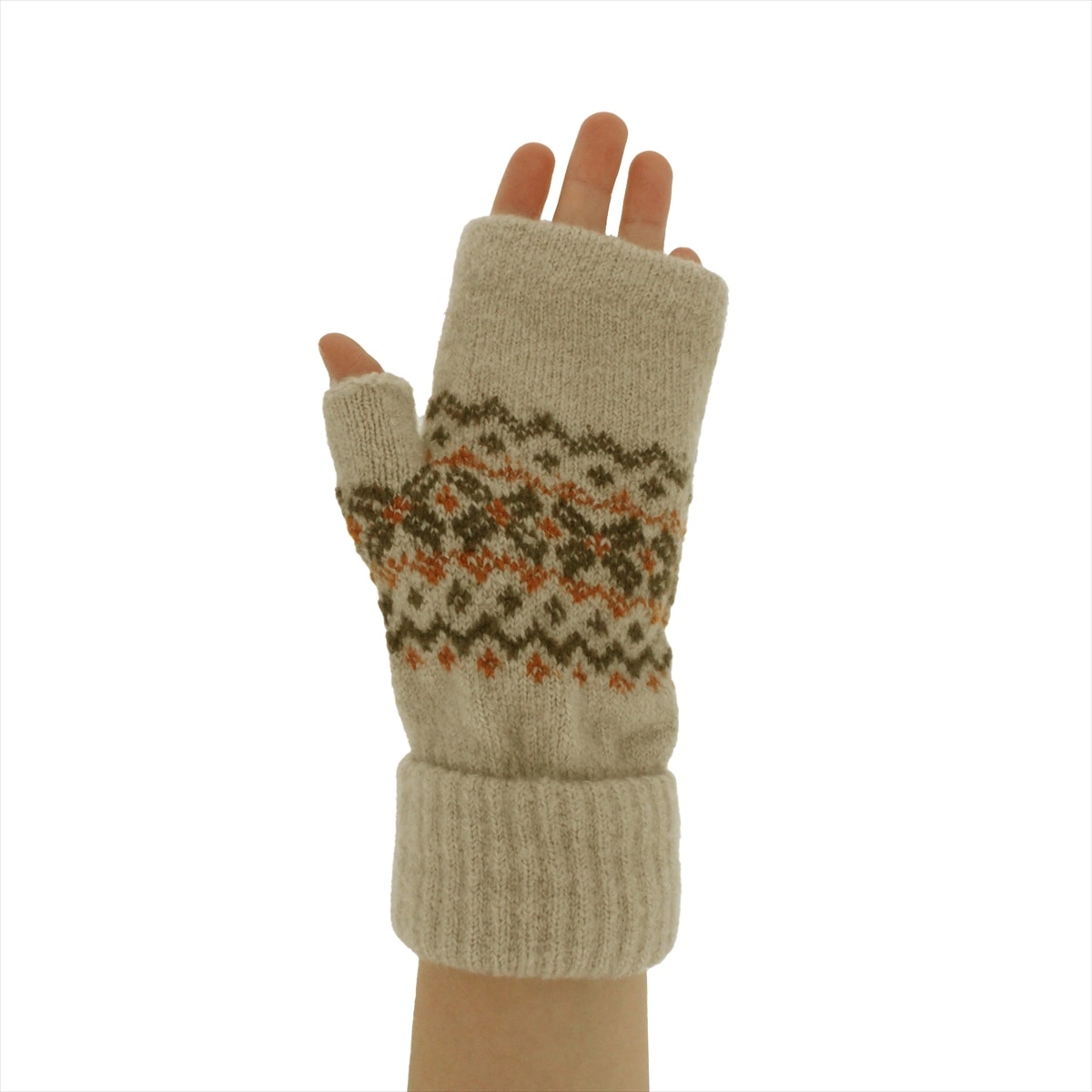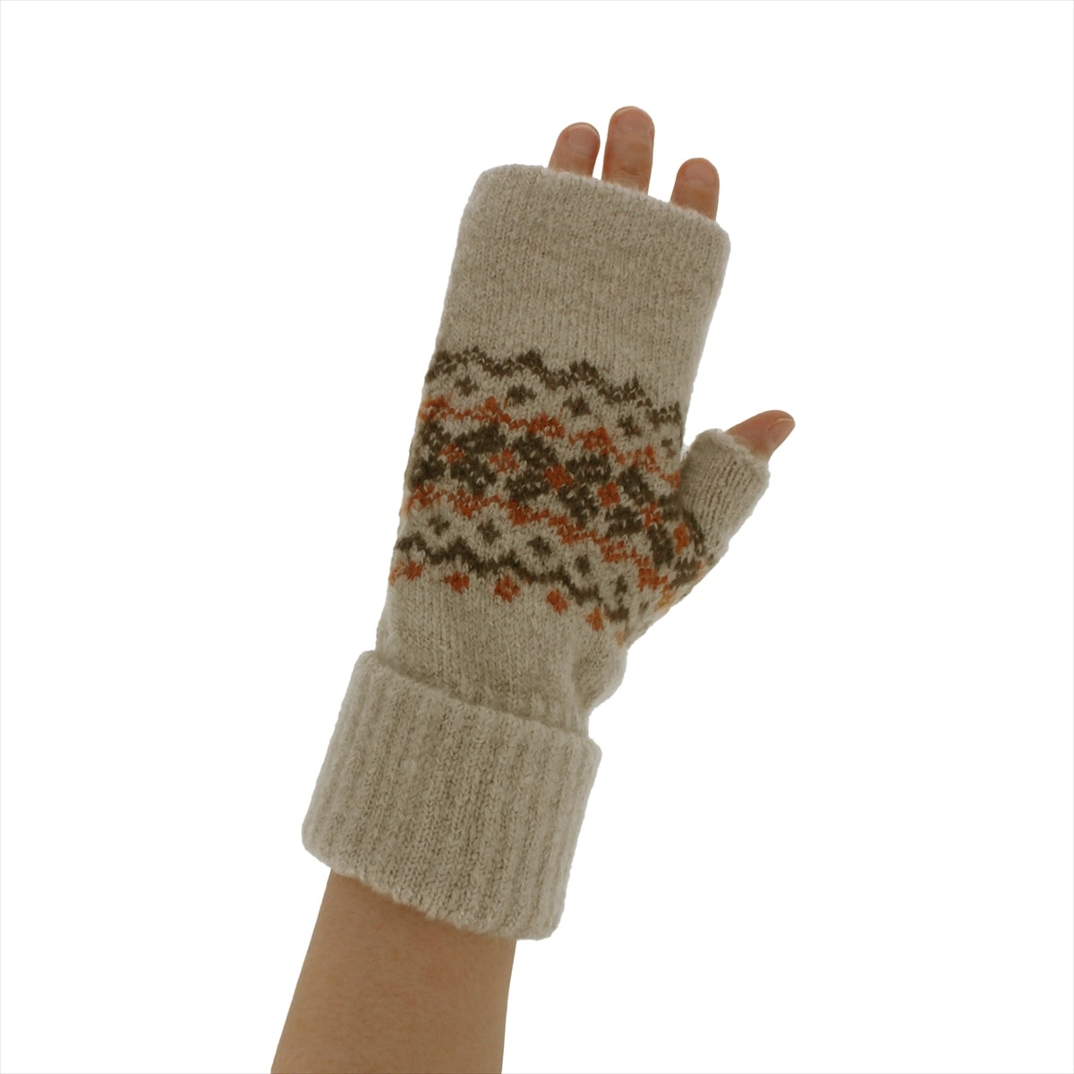 ふわふわと気持ちの良い肌触りの指先フリータイプのニット手袋です。寒い季節に欲しくなる、ノルディック柄をブランドらしい優しく、かわいらしいパステルカラーの配色にしました。指先フリータイプはスマートフォンを直接触れるので、ストレスなくご使用いただけます。屋外や倉庫内での細かい作業時にも最適です。使用しているシュークリームタム糸は通常の行程とは異なり、糸を染めてから、起毛する事でふんわりした風合いになります。 サイズ: 女性用フリーサイズ 総丈21cm 素 材: アクリル・ナイロン・ポリウレタン 原産国: 日本(自社工場)