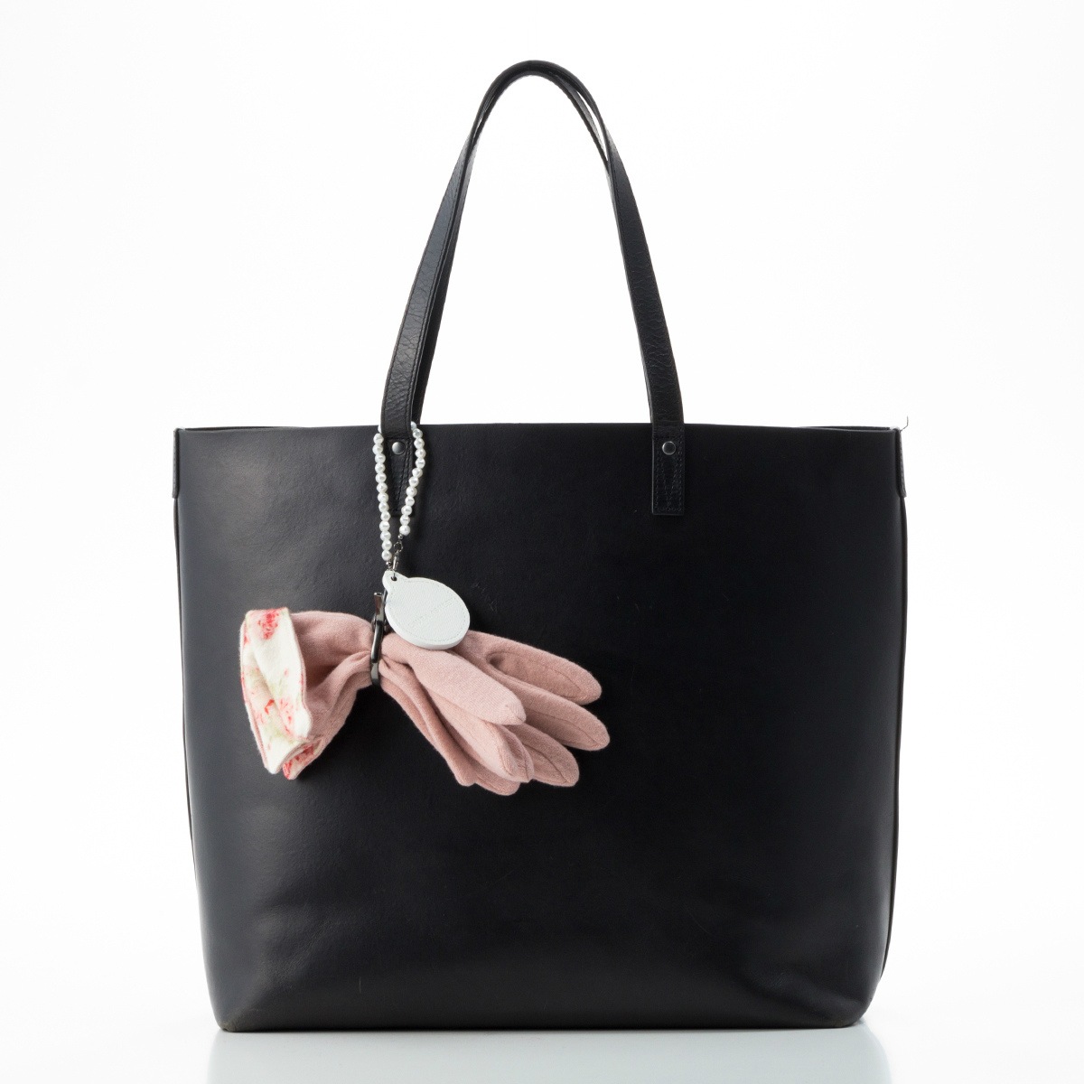 パールチェーンに、可愛いミラーがついたグローブホルダーです。素材:合成皮革・ユリア樹脂・亜鉛合金・真鍮・鉄