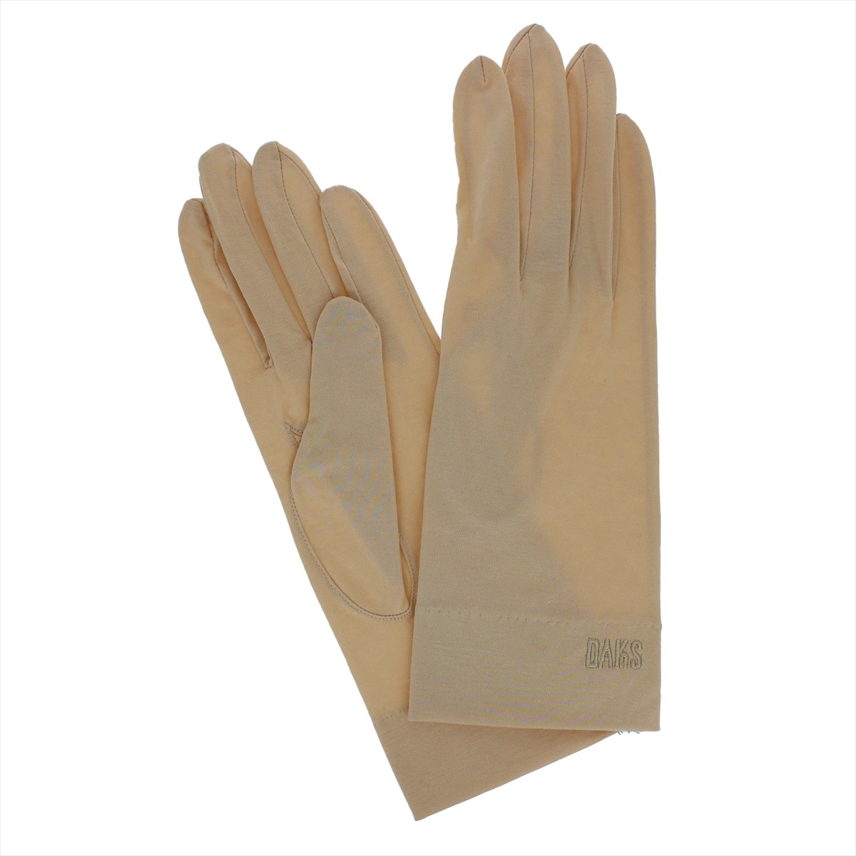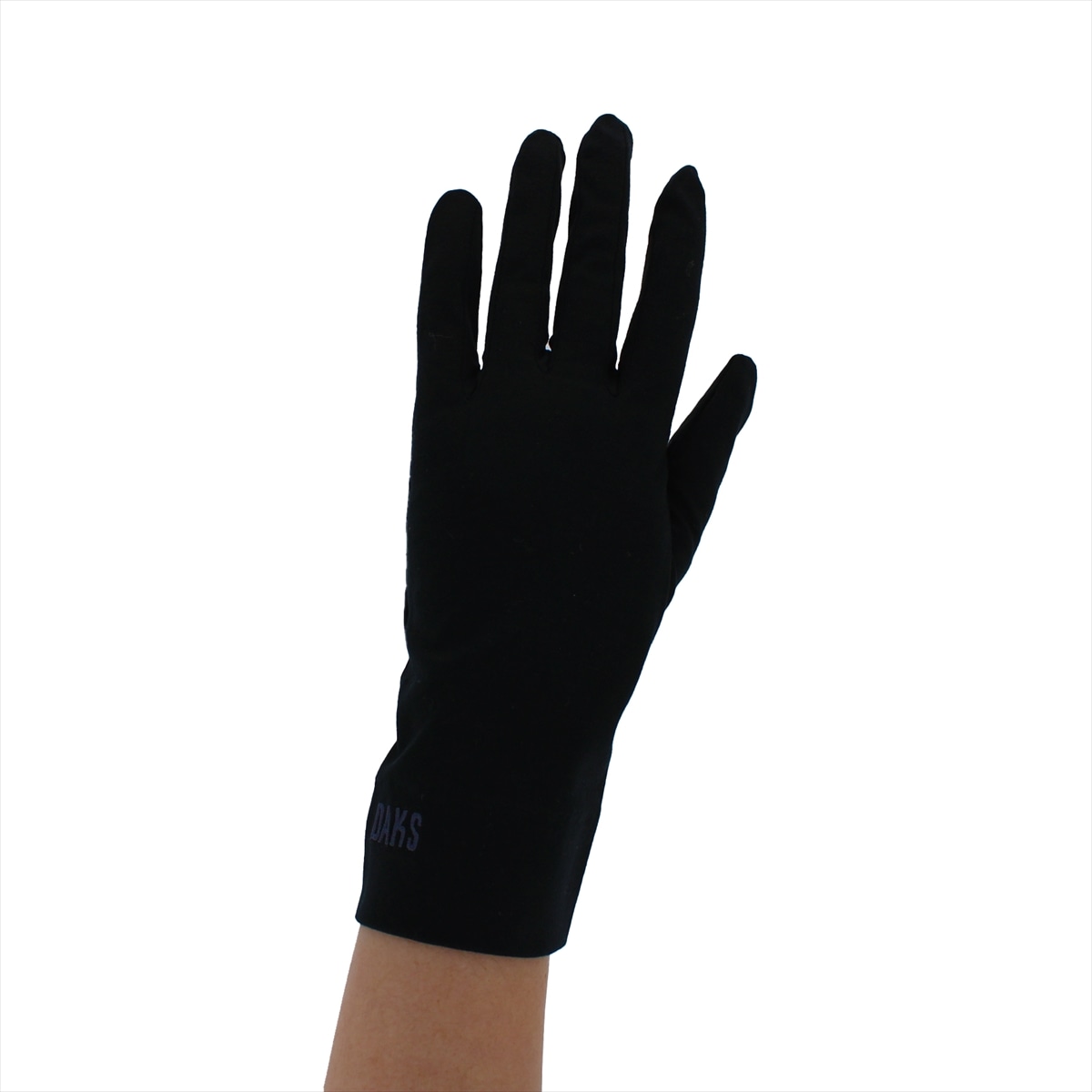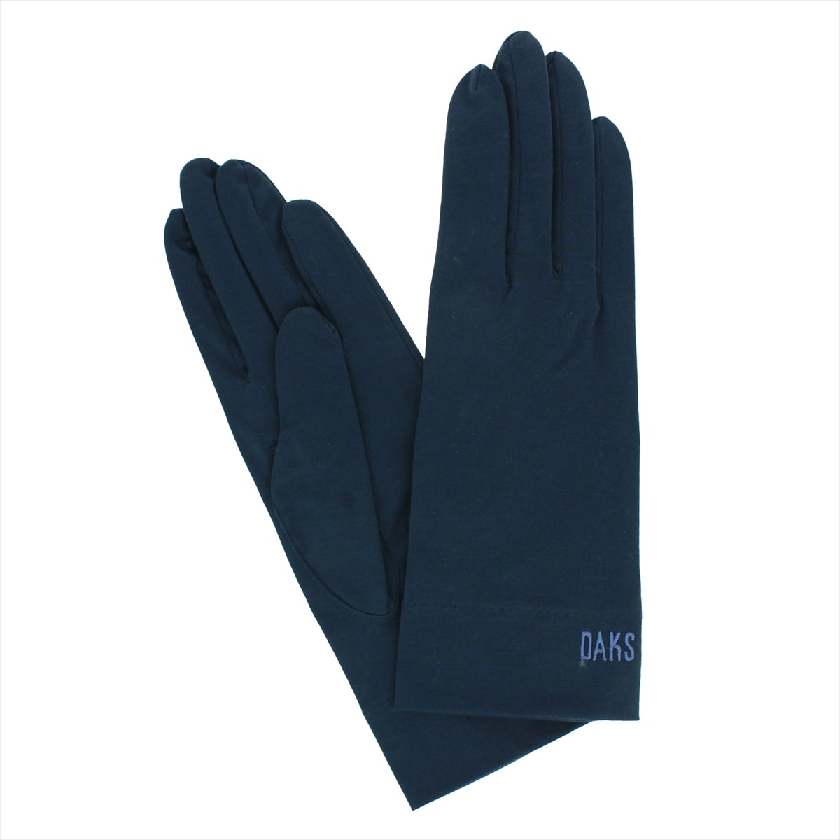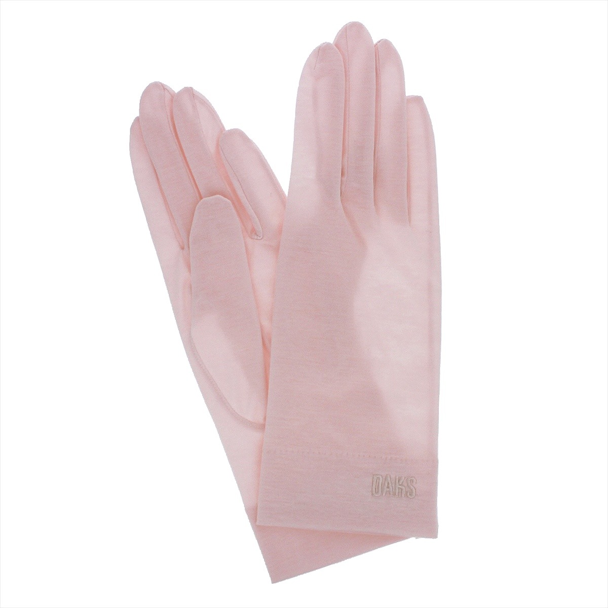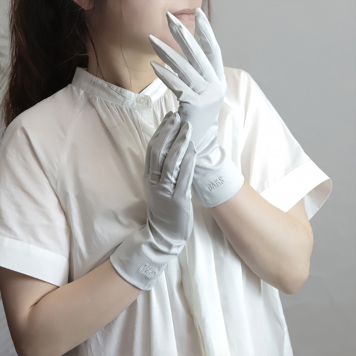 シンプルながらもエレガントなDAKSらしい高級感のあるショート丈のUVカット手袋です。国内で生産されている手袋の約9割を生産している、香川県東かがわ市で作った日本製です。高い紫外線カット率の綿を用い、全ての色で96%以上の高遮蔽率、ブラックは99%以上の遮蔽率です。指先までしっかり日焼け対策したい方におススメの5本指スタイルです。どんなお洋服にも合わせやすいベーシックなデザインなので、プレゼントやギフトに最適です。 サイズ: 手囲い:21~22?(女性用) 総丈:25cm 紫外線遮蔽率:ブラック 99.6%,グレー 96.7%,ピンク94.9%,ネイビー 98.6%,サックス 96.4%,Lベージュ 96.8% 素材:綿100% 原産国: 日本