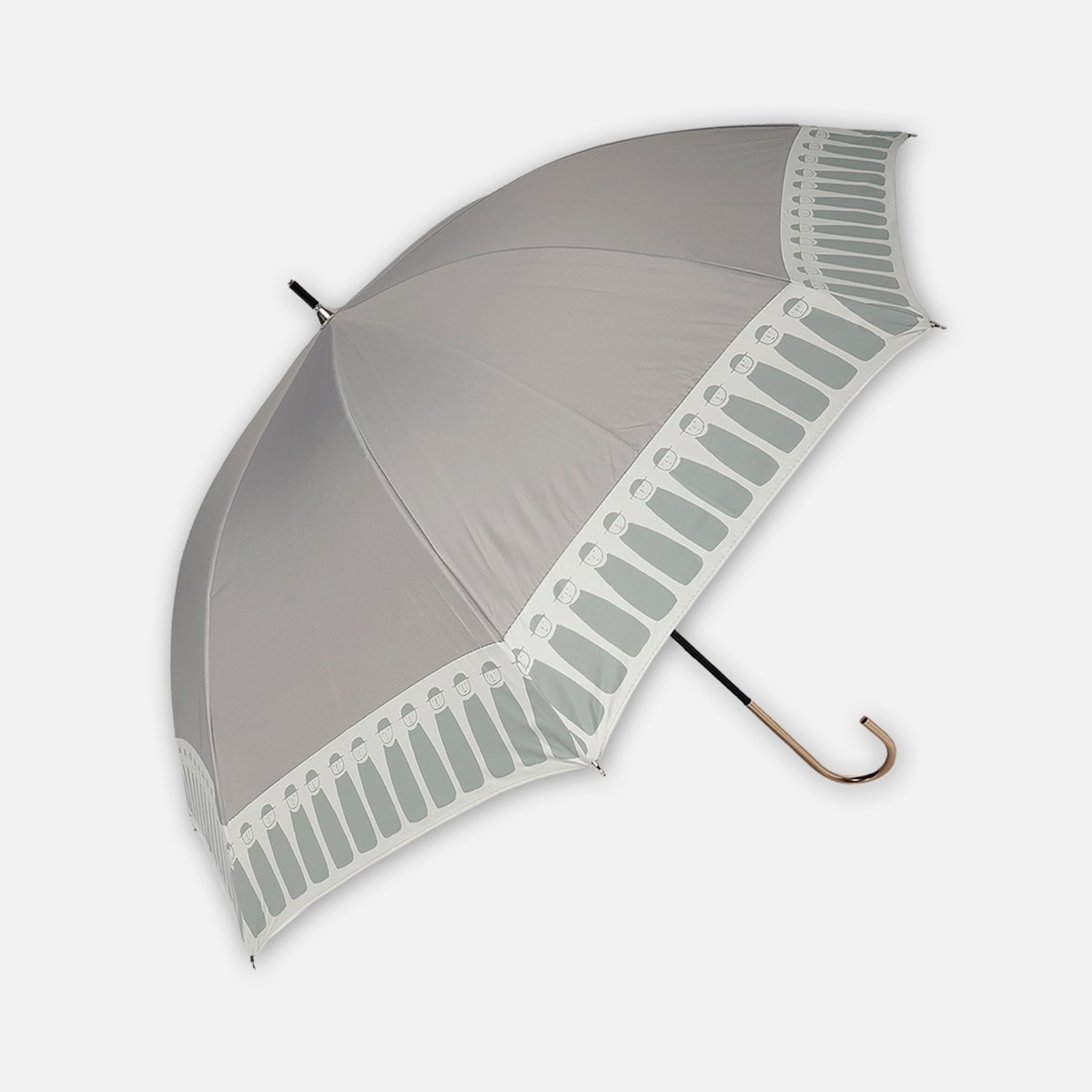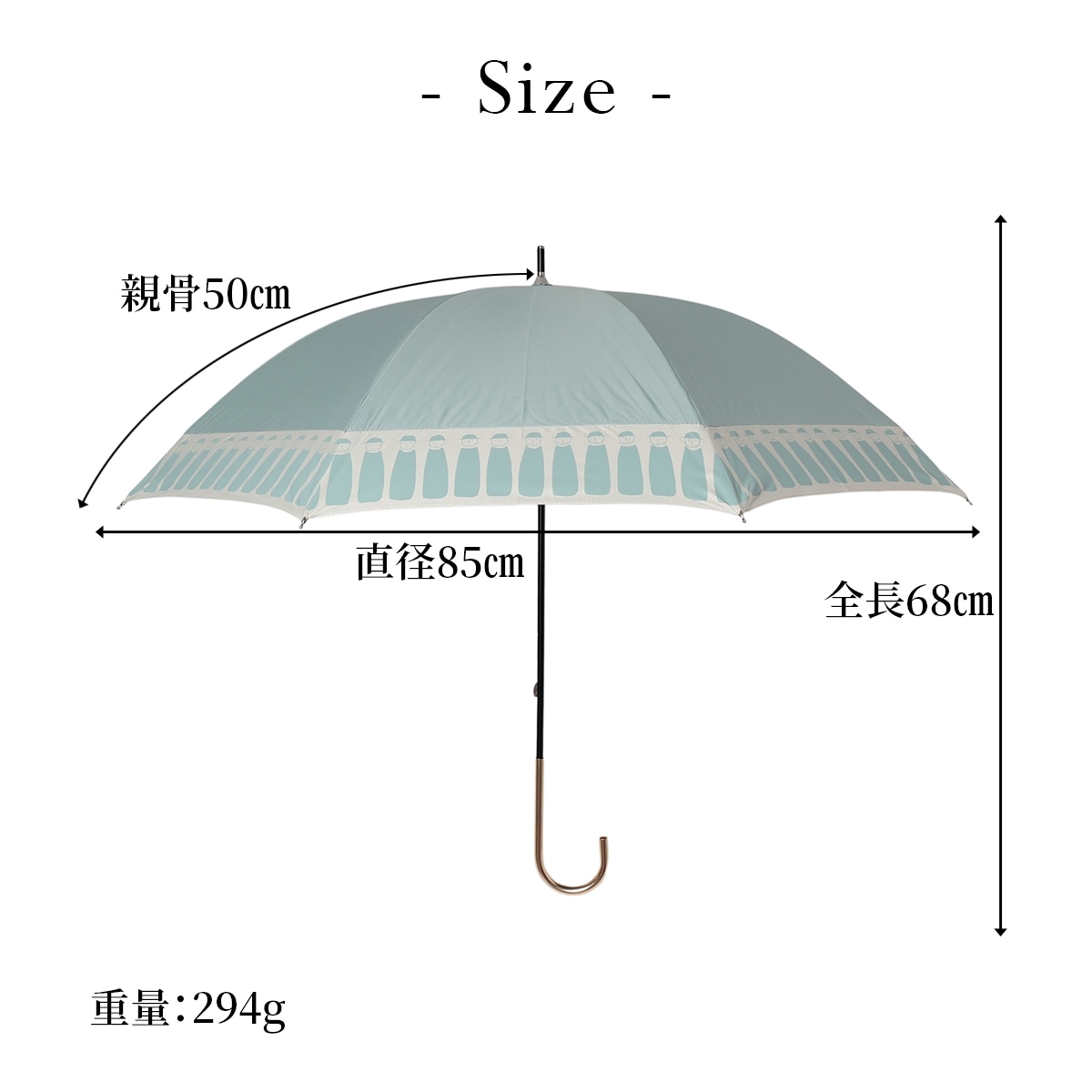 優しい色合いとアルチビオがかわいいらしい人気ブランドPICONE ACCESSORIの晴雨兼用長傘です。狭い場所でも開きやすい手開き式。生地の裏面にポリウレタン樹脂でコーティング加工をしているため、生地の目がしっかり埋まり、UVカット・遮光・耐水性に優れています。紫外線遮蔽率99.9%以上。遮光率99.9%以上。プレゼントやギフトにもおススメです。 サイズ: 全長:68cm、親骨:50cm、直径:85cm 重量:294g ポケット:手開き式、紫外線遮蔽率:99.9%以上、遮光率:99.9%以上 素材: 生地の組成:ポリエステル100% 原産国: 中国