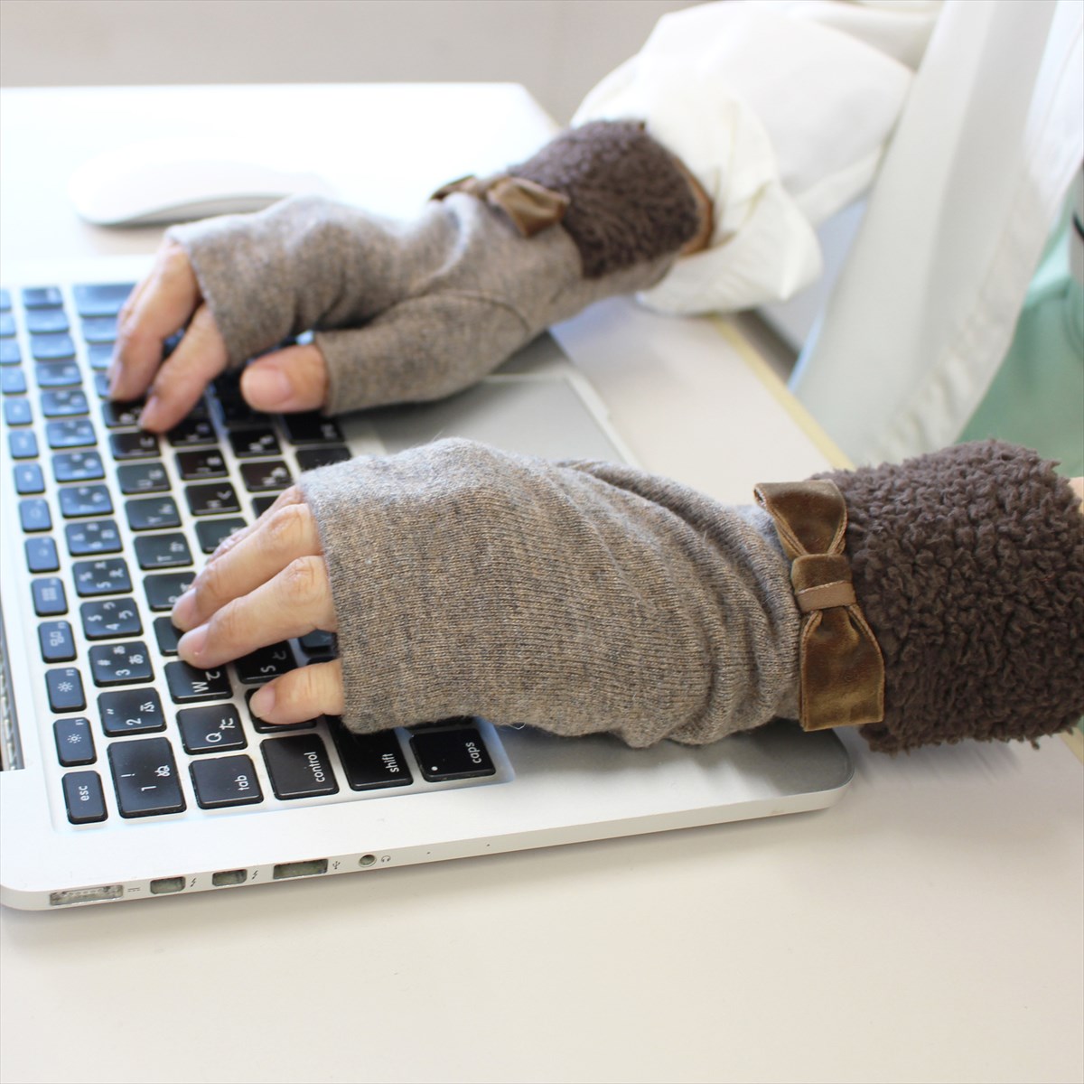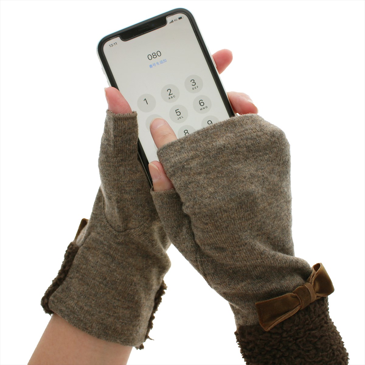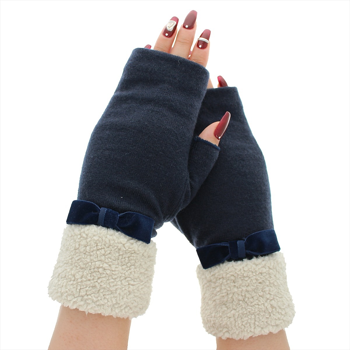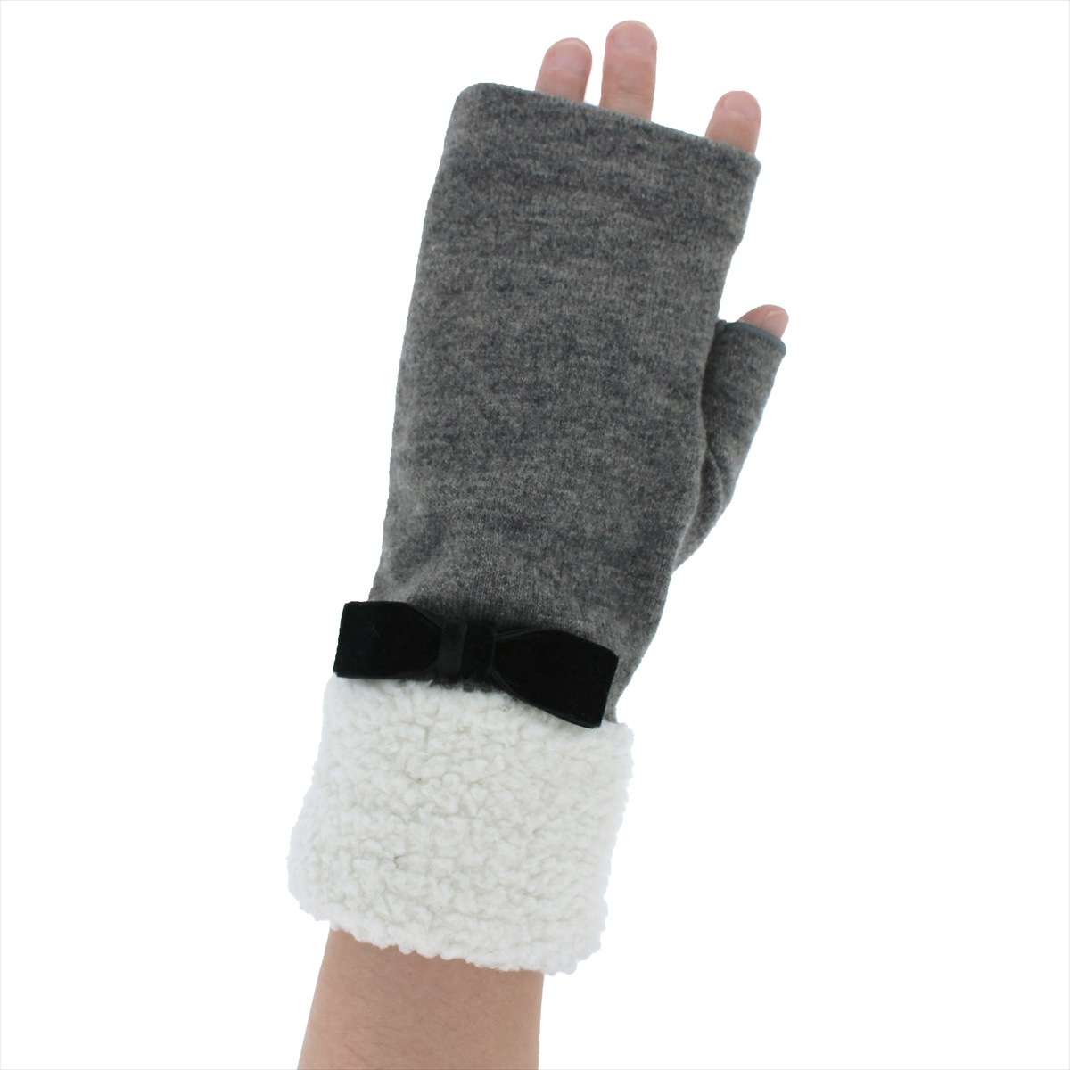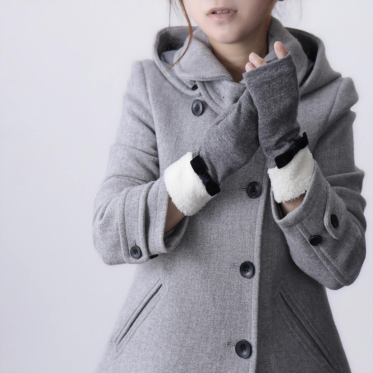 手首のボアが暖かで大きめベルベットのリボンが大人可愛い、スマホ対応手袋です。指先フリータイプなので、直接スマートフォンやタッチパネルに触れられるため、スワイプやクリック、指紋認証も機能性抜群です。素敵なネイルも隠れません。どんなお洋服ともコーディネートしやすいベーシックカラーでプレゼントやクリスマスギフトにピッタリです。人気ブランドローラアシュレイが好きな方や可愛らしい物が好きな方にもおススメ♪ サイズ: 手囲い:21~22cm(女性用Mサイズ) 総丈:21cm 素材:ナイロン・アクリル・毛 ボア部分 ポリエステル100% リボン部分 ナイロン100% スマートフォン対応:○ 滑り止め:- 厚み:やや薄手 伸縮性:〇 原産国: カンボジア(自社工場)