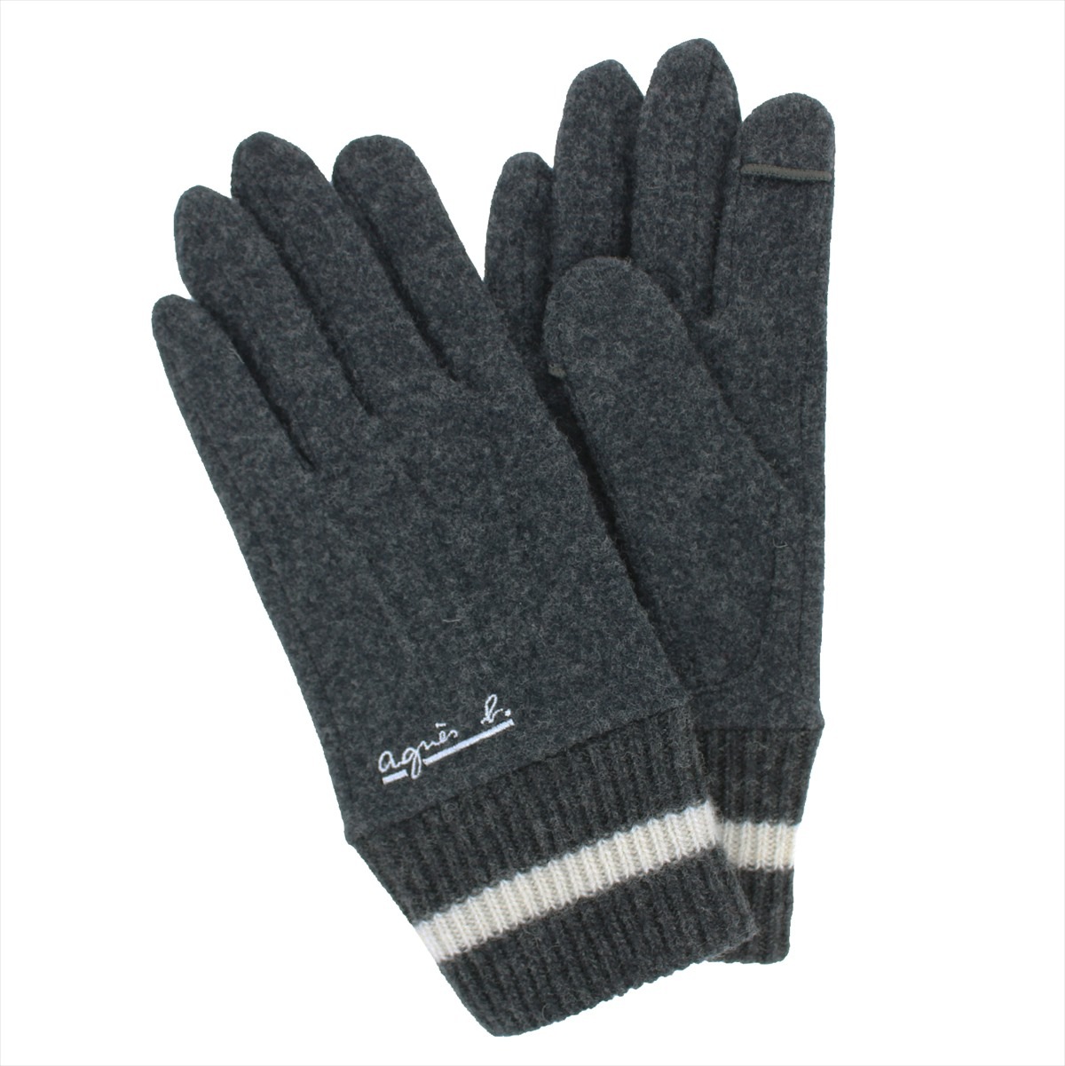 ニットカフス付きで手首が暖かい、ロゴ「agnes b.」刺繍がおしゃれなスマホ対応手袋です。シンプルでベーシックなカラーは、年齢を問わず誰でもコーディネートしやすいアイテム。オンにもオフにもご使用いただけます。必要に応じて、指先だけを簡単に出すことが出来るスタイルのスマートフォン対応手袋で、直接スマホに触れられるため、スワイプやクリック、指紋認証も機能性抜群です。寒い日でも手袋を外さずにすみ、暖かいまま過ごすことが出来ます。プレゼントやクリスマスギフトにもピッタリです。 こちらの手袋は世界で一番空気がおいしいオーストラリア・タスマニア島の赤ちゃん羊のファーストカットされた羊毛、タスマニアラムを使用して製品化しており、心地よい肌触りが魅力です。 サイズ: 手囲い:23~24cm(男性用Mサイズ) 総丈:25cm 素材:毛・ナイロン スマートフォン対応:○ 滑り止め:- 厚み:やや薄手 伸縮性:〇 原産国: 中国(自社工場)