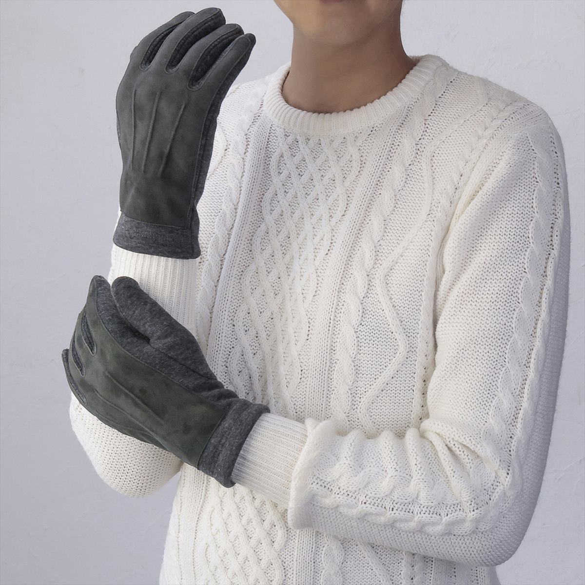柔らかな肌触りの暖かな裏起毛、甲側にスエードをあしらった、人気ブランドアニエスベーのスマホ対応手袋です。甲側のスエードで風が通りにくく、自転車で通勤・通学をされる方にもおススメです。シンプルでベーシックなカラーは、年齢を問わず誰でもコーディネートしやすいアイテム。オンにもオフにもご使用いただけます。スマートフォン対応なので、寒い日でも手袋を外さずにすみ、暖かいまま過ごすことが出来ます。プレゼントやクリスマスギフトにもピッタリです。 サイズ: 手囲い:23~24cm(男性用Mサイズ) 総丈:25cm 素材:ポリエステル・綿・ポリウレタン 皮革部分 羊革 スマートフォン対応:○ 滑り止め:- 厚み:やや厚手 伸縮性:〇 原産国: 中国(自社工場)
