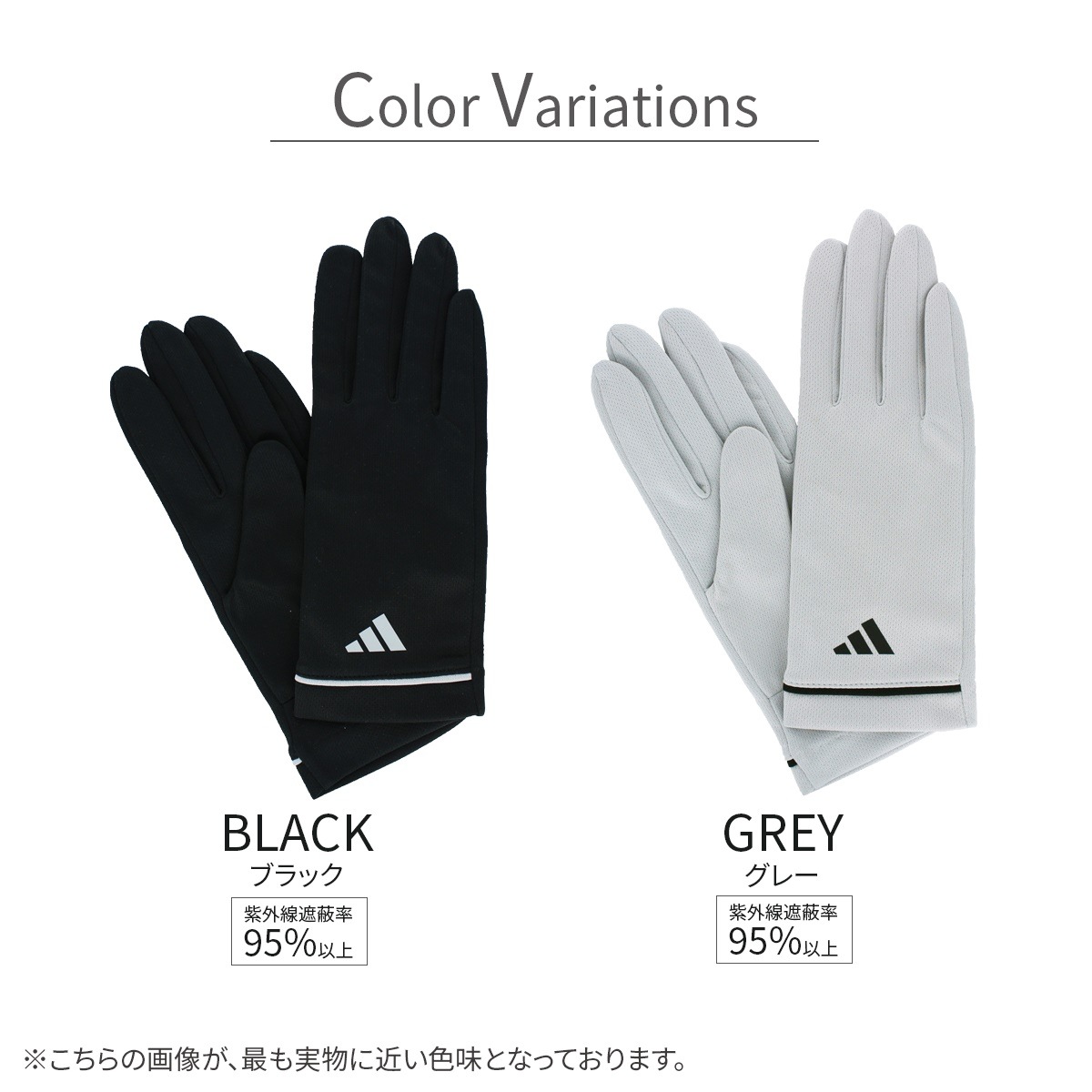 絶対日焼けしたくない人のための人気ブランドadidasのUPF50+,UVカット率95%以上の高遮蔽ショート丈UVカット手袋です。吸水速乾素材は運動やスポーツ時、暑い夏も快適にご使用いただけます。ご家庭で洗えるので汗をかく季節も清潔にお使い頂けます。指先までしっかり日焼け対策したい方におススメの5本指スタイルです。