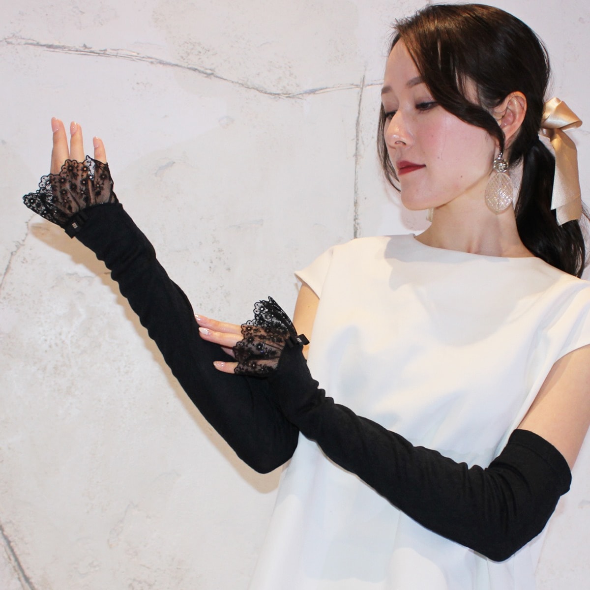 メッシュ、レース等の透け感のある生地を使用しているものは、その部位について紫外線遮蔽効果はありませんのでご了承ください。