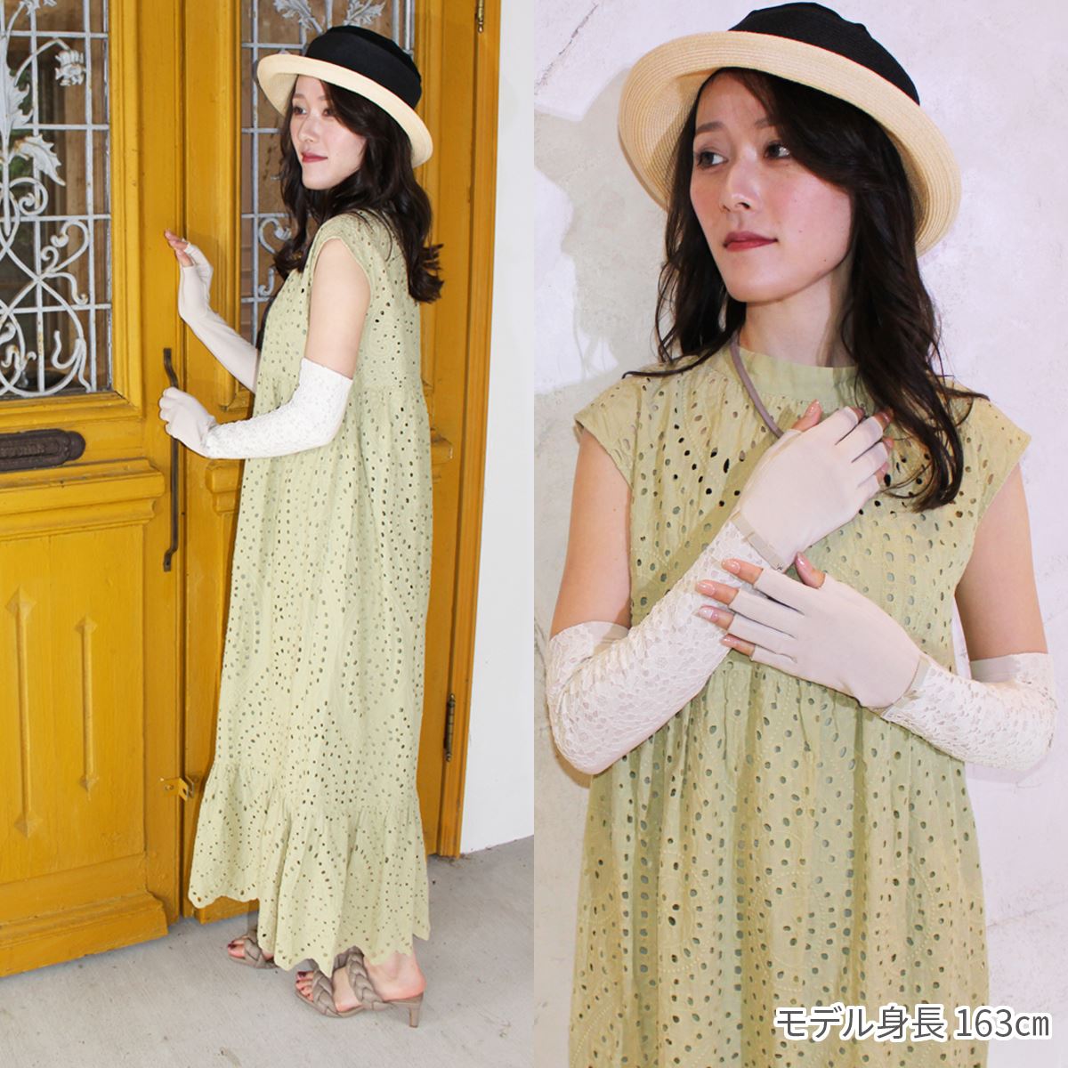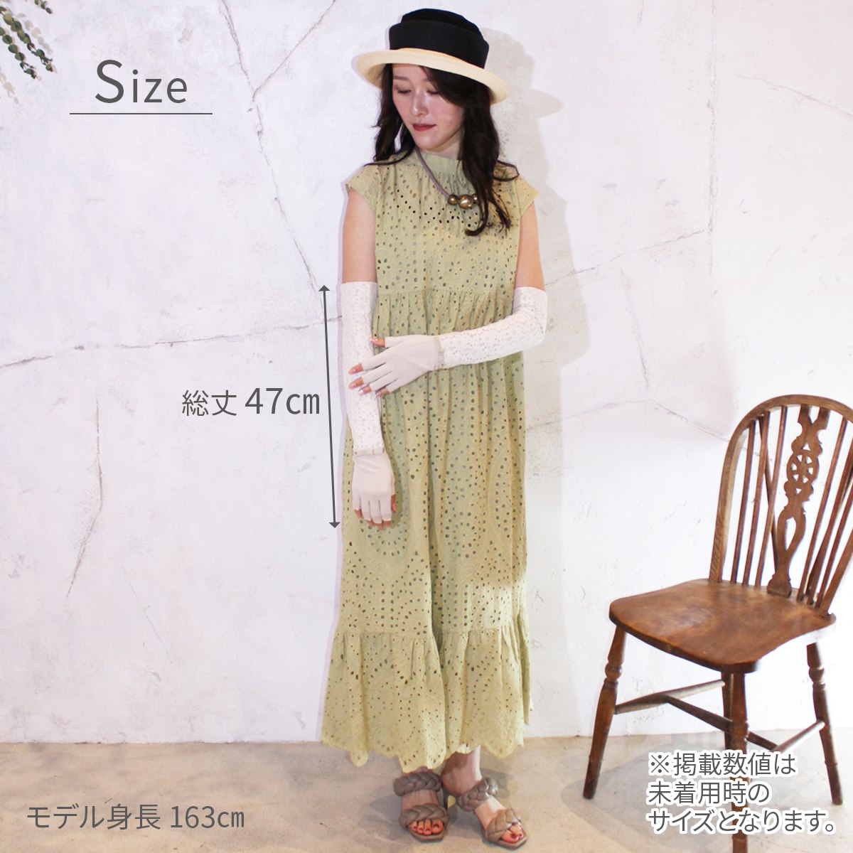 メッシュ、レース等の透け感のある生地を使用しているものは、その部位について紫外線遮蔽効果はありませんのでご了承ください。