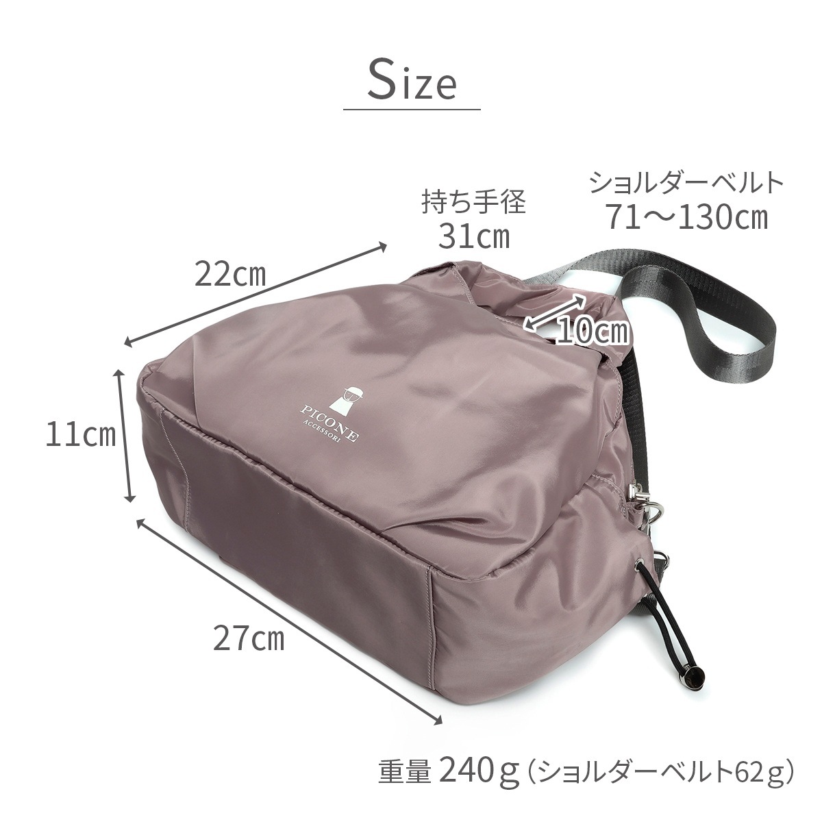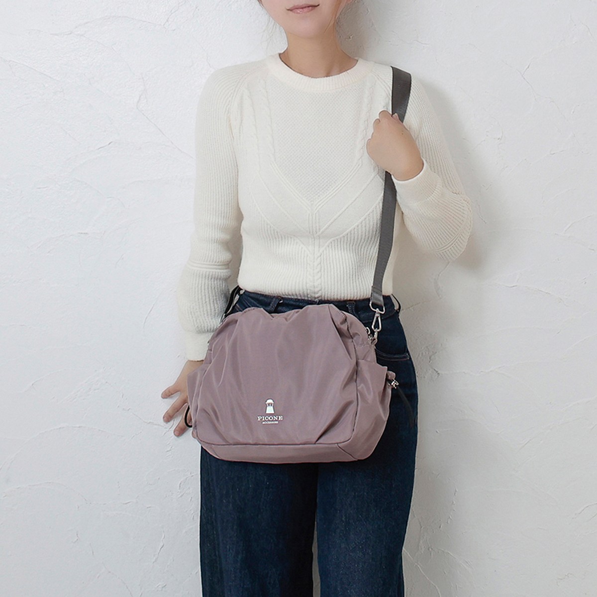 お出かけに便利な人気ブランドPICONE ACCESSORIのワンポイントがプリントされたショルダーバッグです。ショルダーベルトと合わせてもわずか302gととにかく軽いので、お買い物やお散歩などの日常使いや旅行などにおススメです。肩ひもはサイズ調整可能で、肩掛けでも斜め掛けでもご使用頂けます。また取り外し可能なので、お好みに応じてハンドバッグとしてもお使いいただけます。シンプルなデザインなので、幅広い年代の方にお使い頂け、プレゼントやギフトにも最適です。