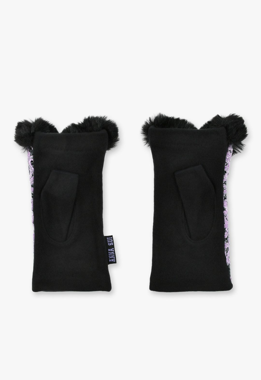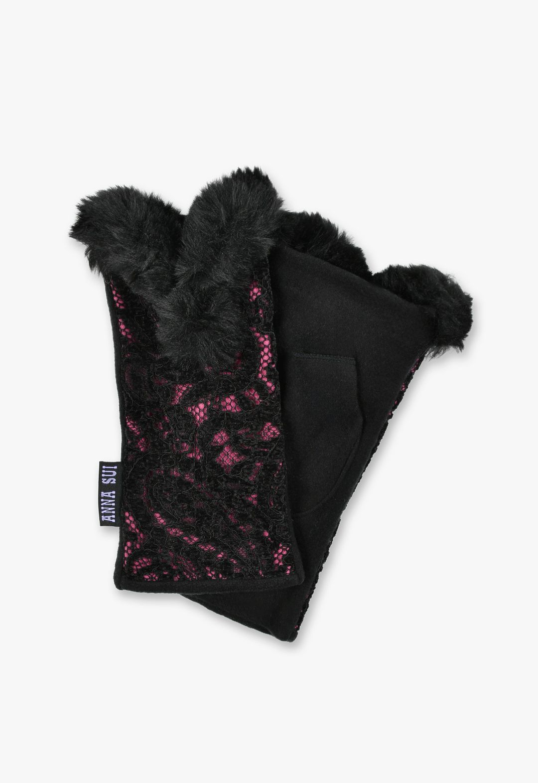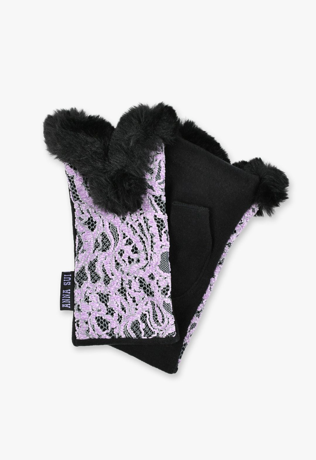 甲部分にペイズリー柄のモールレースをレイヤードしたラグジュアリーなデザインのスマホ対応手袋です。指先フリータイプなので、直接スマートフォンやタッチパネルに触れられるため、スワイプやクリック、指紋認証も機能性抜群です。素敵なネイルも隠れません。人気ブランドアナスイらしい配色と手先についたエコファーがエレガントで暗くなりがちな冬のコーディネートが華やぎます。柔らかでチクチク感がなく滑らかで、伸縮性があり手にフィットする素材を使用しており、ふんわりと心地よく手を温めてくれます。家族や恋人、大切な人へのプレゼントやクリスマスギフトにもおススメです。