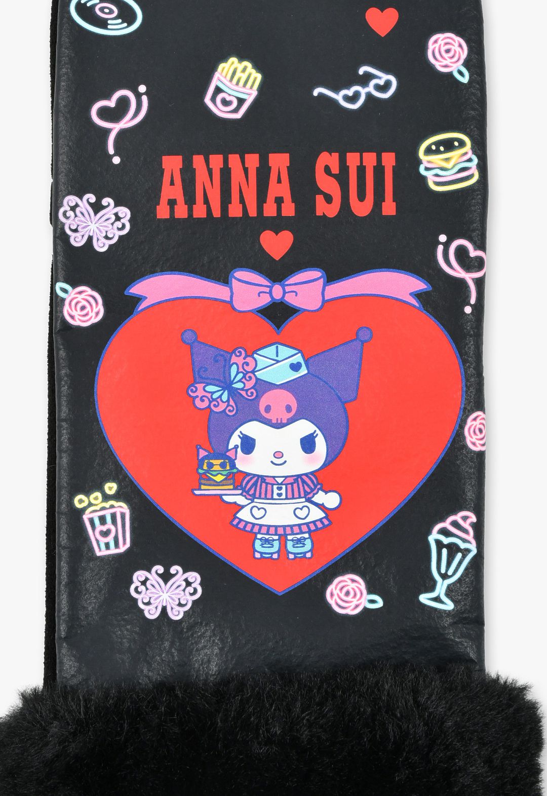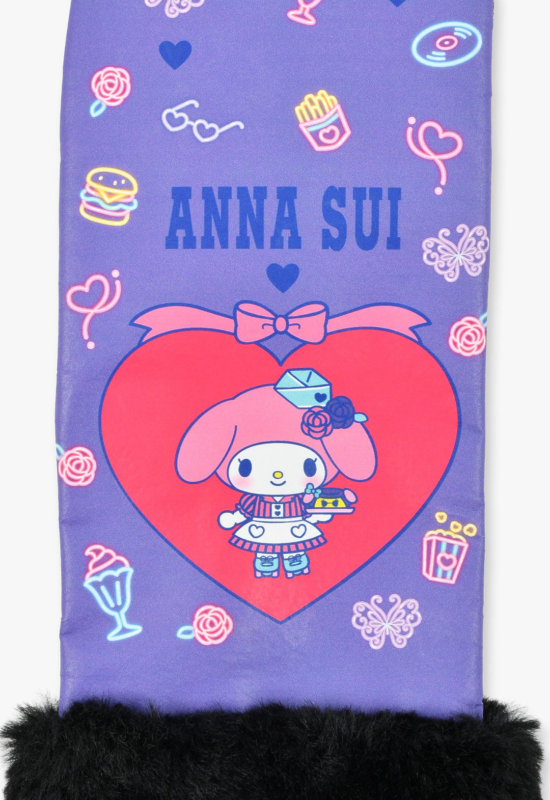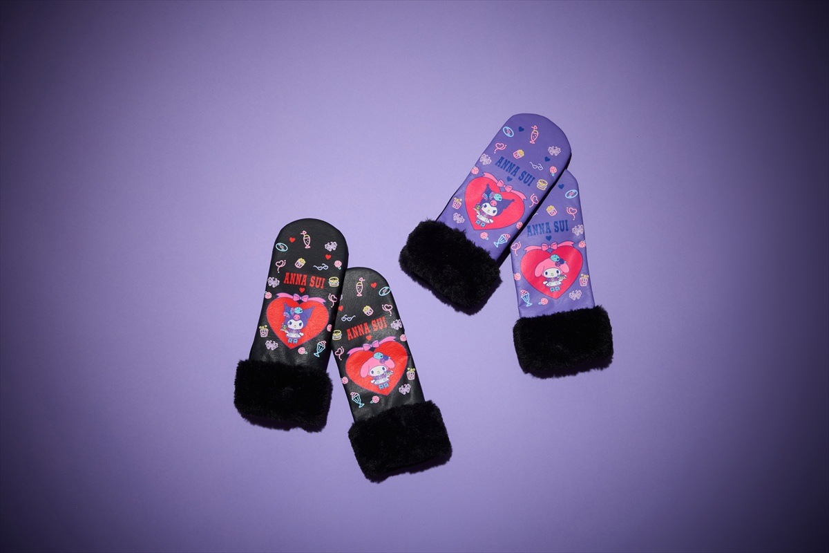 ANNA SUI×マイメロディ・クロミコラボシリーズ。マイメロ50th、クロミ20thを記念したANNA SUI × MY MELODY KUROMI スマホ対応ファー付きミトンです。繊細な柄を甲側にプリントで表現しました。アメリカンなウェイトレスになったマイメロとクロミがかわいい、つけていると楽しくなる手袋。必要に応じて、指だけを簡単に出すことが出来るスタイルのスマホ対応手袋で、直接スマートフォンに触れられるため、スワイプやクリック、指紋認証もでき機能性抜群です。寒い日でも手袋を外さずにすみ、暖かいまま過ごすことが出来ます。手元のファーが手首までしっかりと温めてくれます。