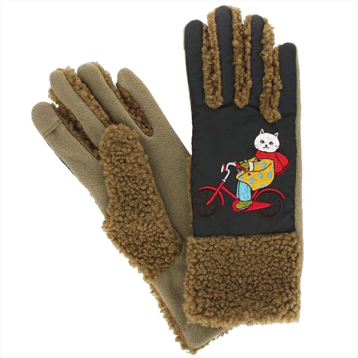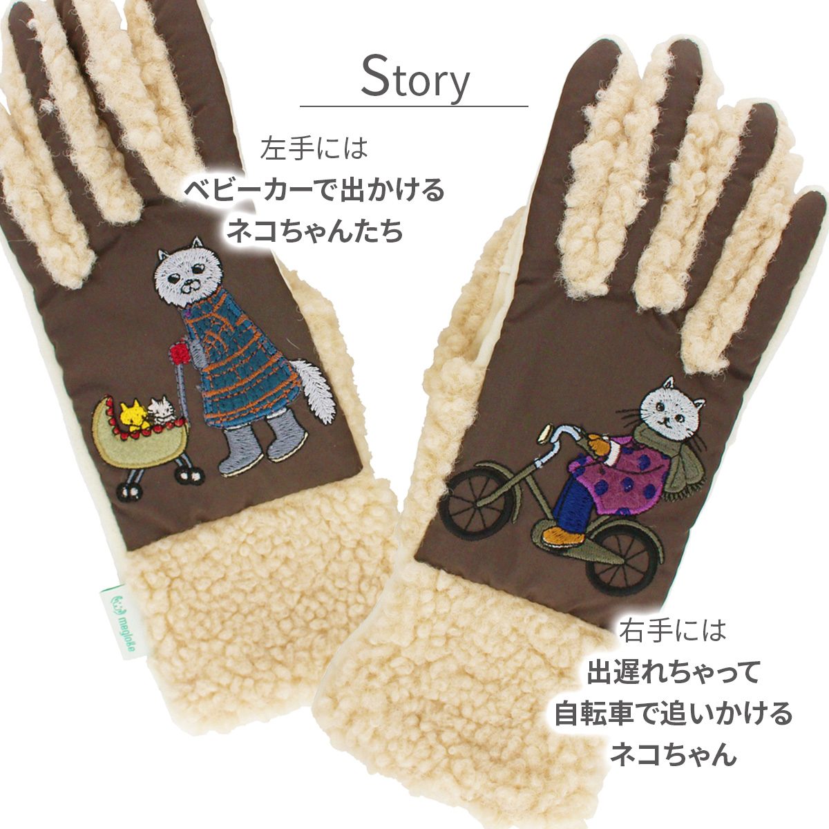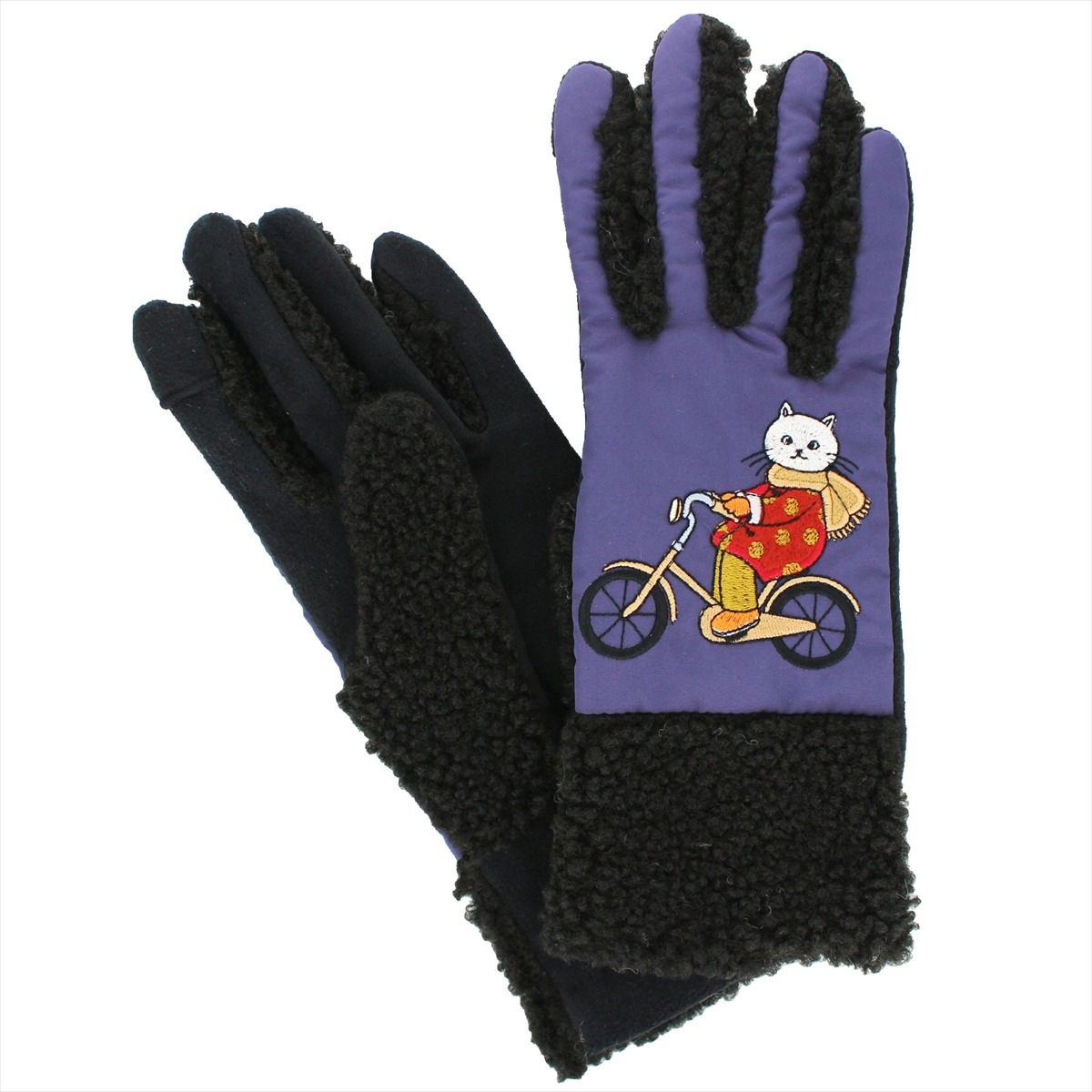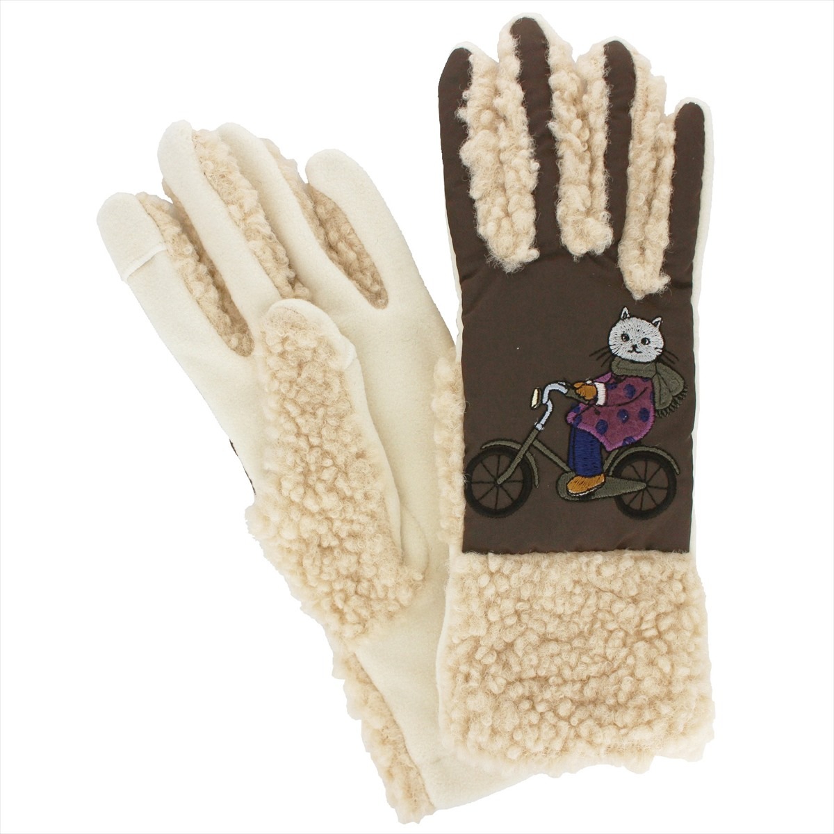 素材:甲側・マチ ポリエステル100% 掌側 ポリエステル・ポリウレタン アップリケ部分 アクリル・毛