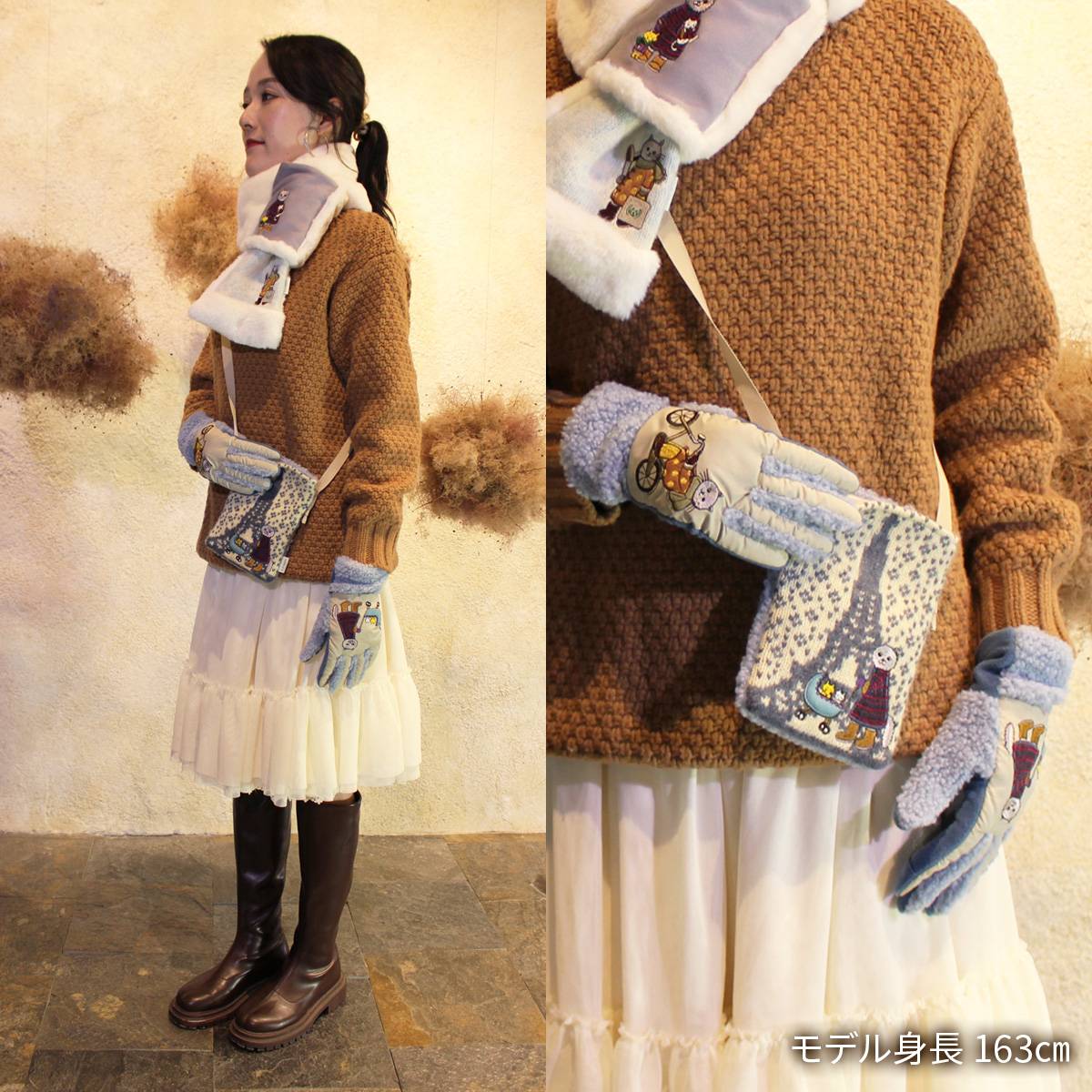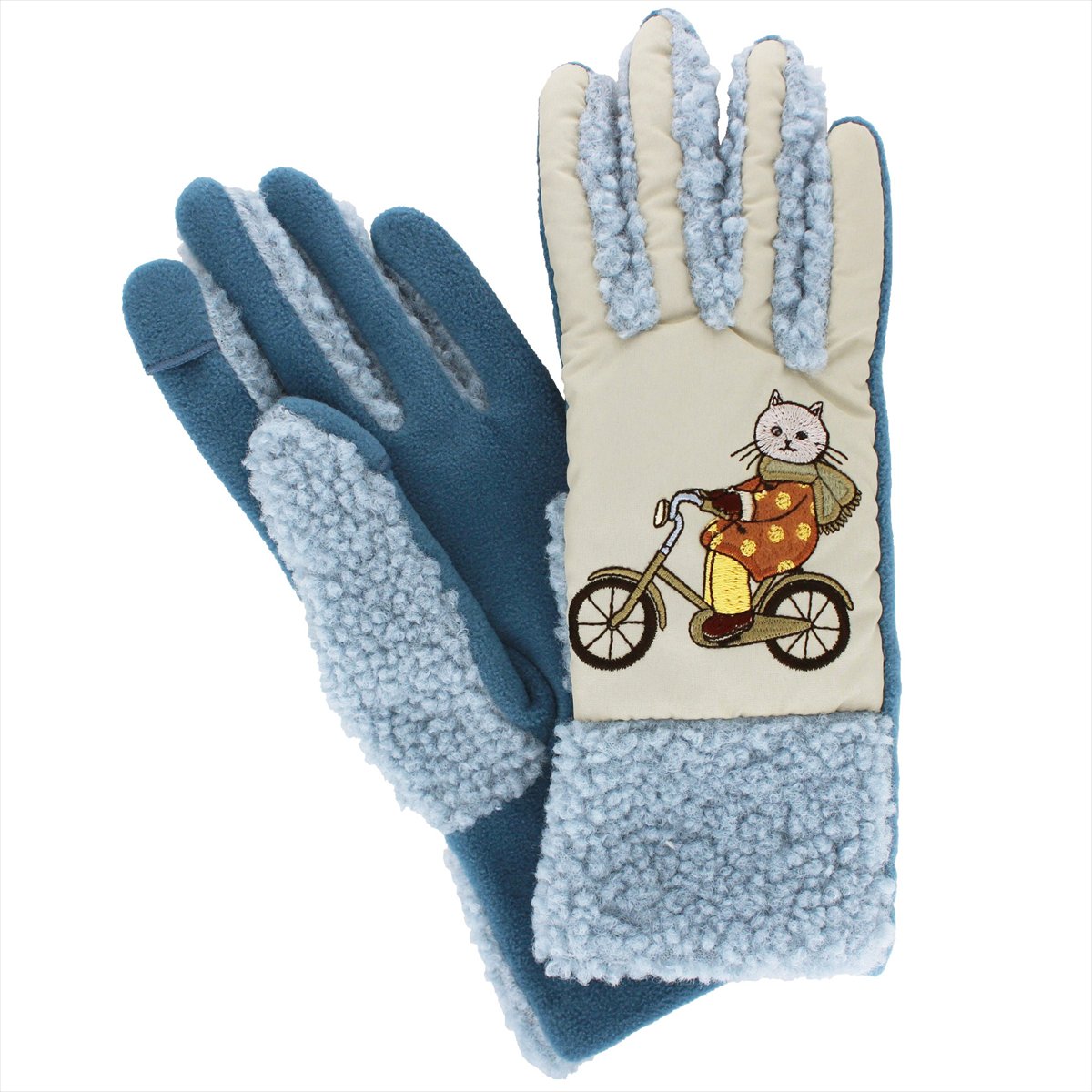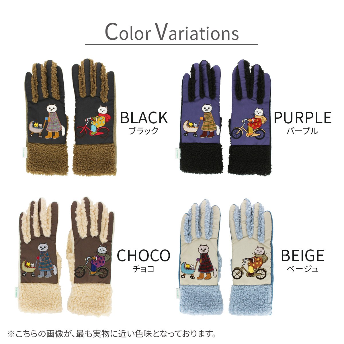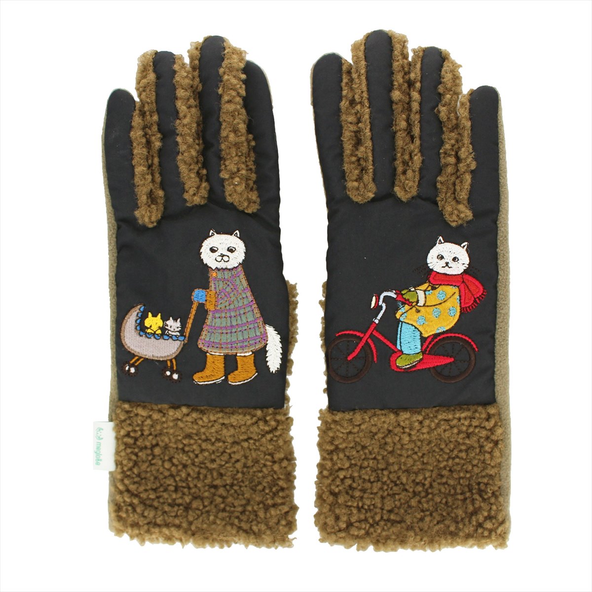 素材:甲側・マチ ポリエステル100% 掌側 ポリエステル・ポリウレタン アップリケ部分 アクリル・毛