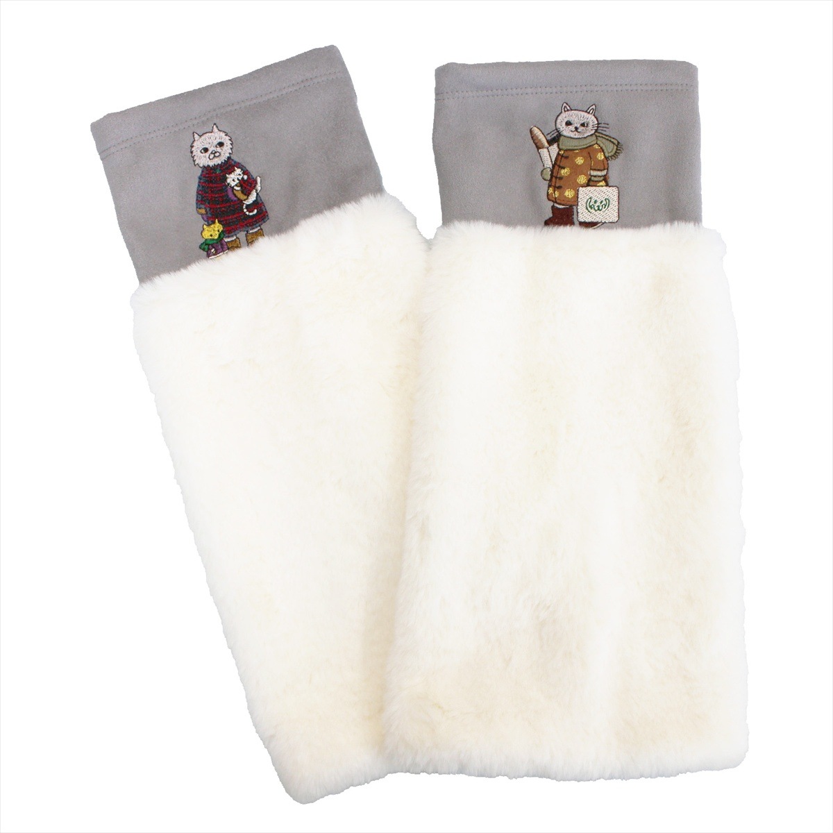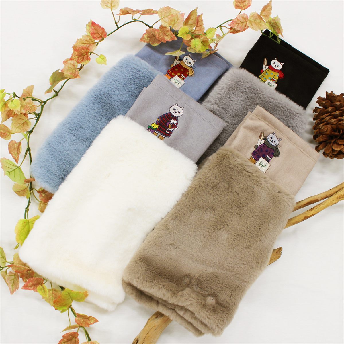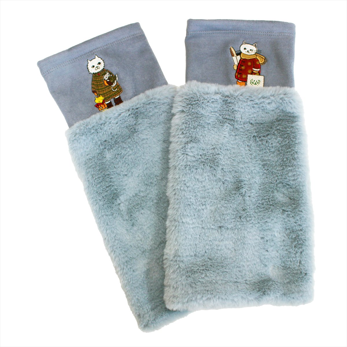 絵本作家の村上幸織氏がメグローブを題材に描いたネコちゃん達のイラストを、多色の刺繍糸使いで、表現しました。村上氏の世界感が広がる冬のアイテム。寒い冬も楽しく過ごせそうなレッグウォーマー。