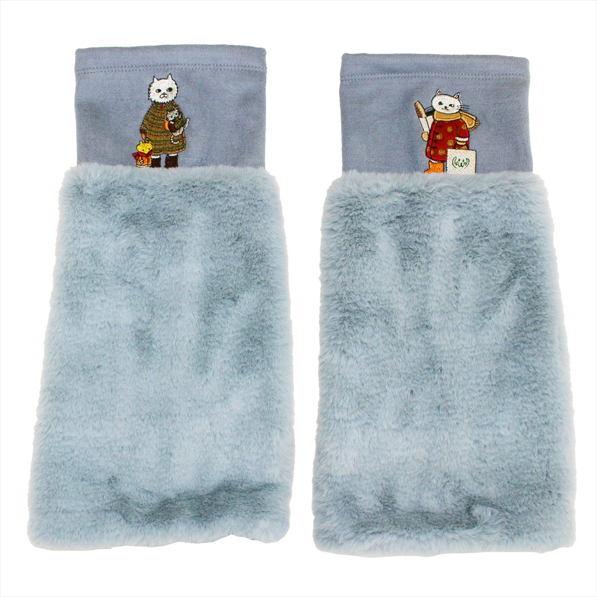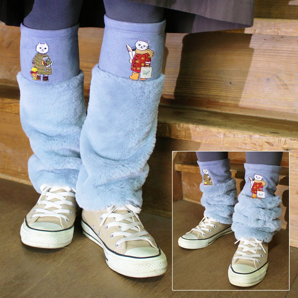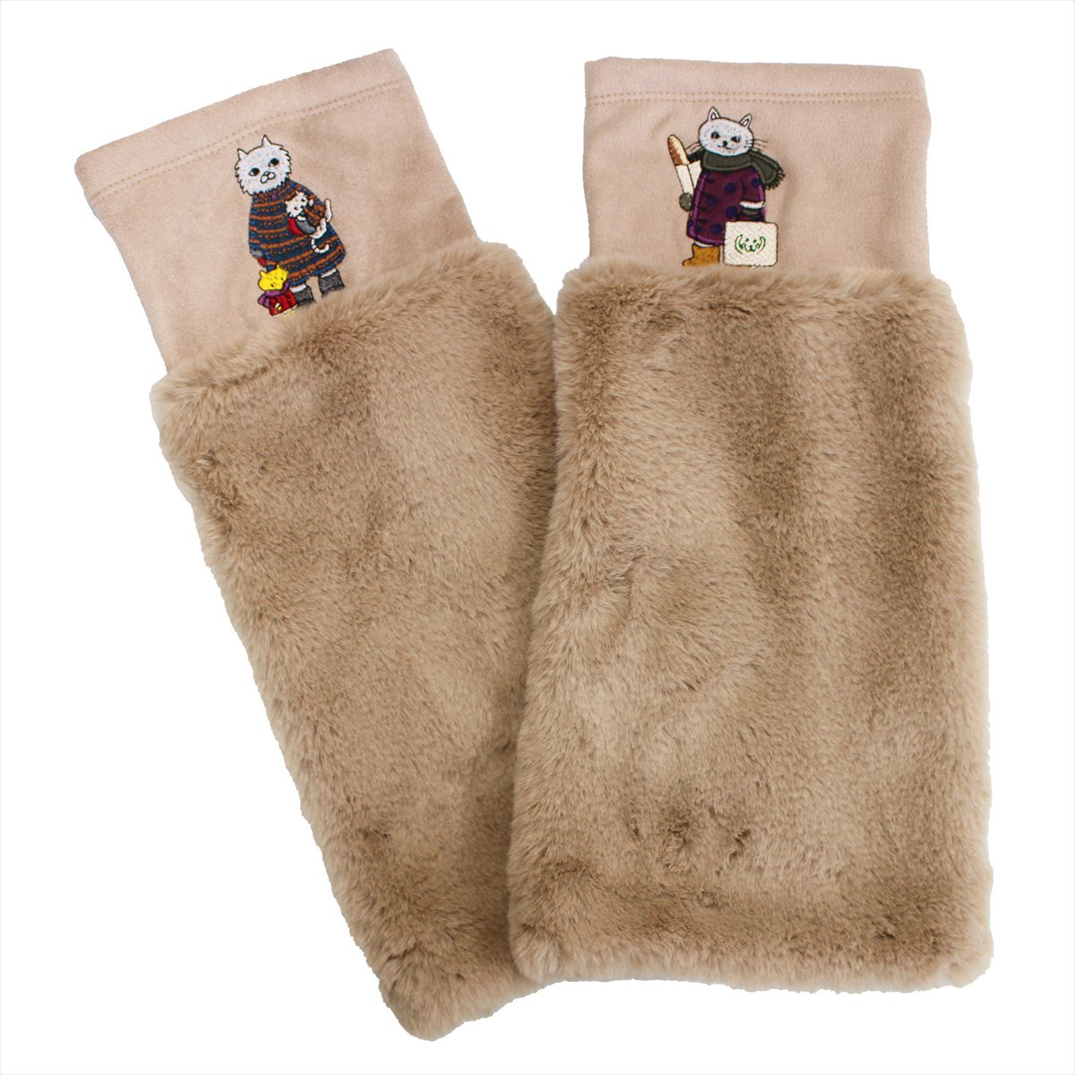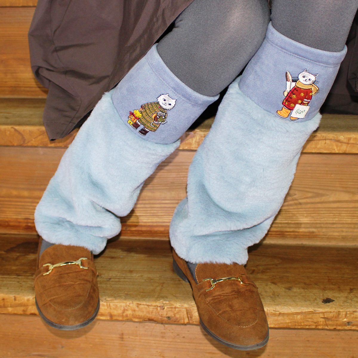 絵本作家の村上幸織氏がメグローブを題材に描いたネコちゃん達のイラストを、多色の刺繍糸使いで、表現しました。村上氏の世界感が広がる冬のアイテム。寒い冬も楽しく過ごせそうなレッグウォーマー。