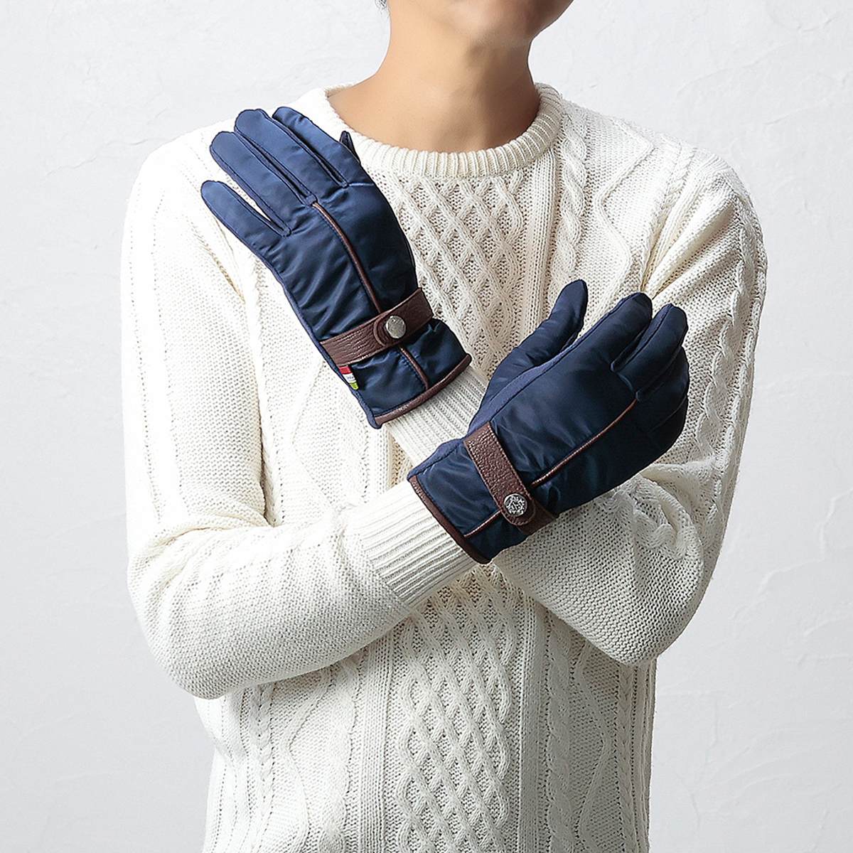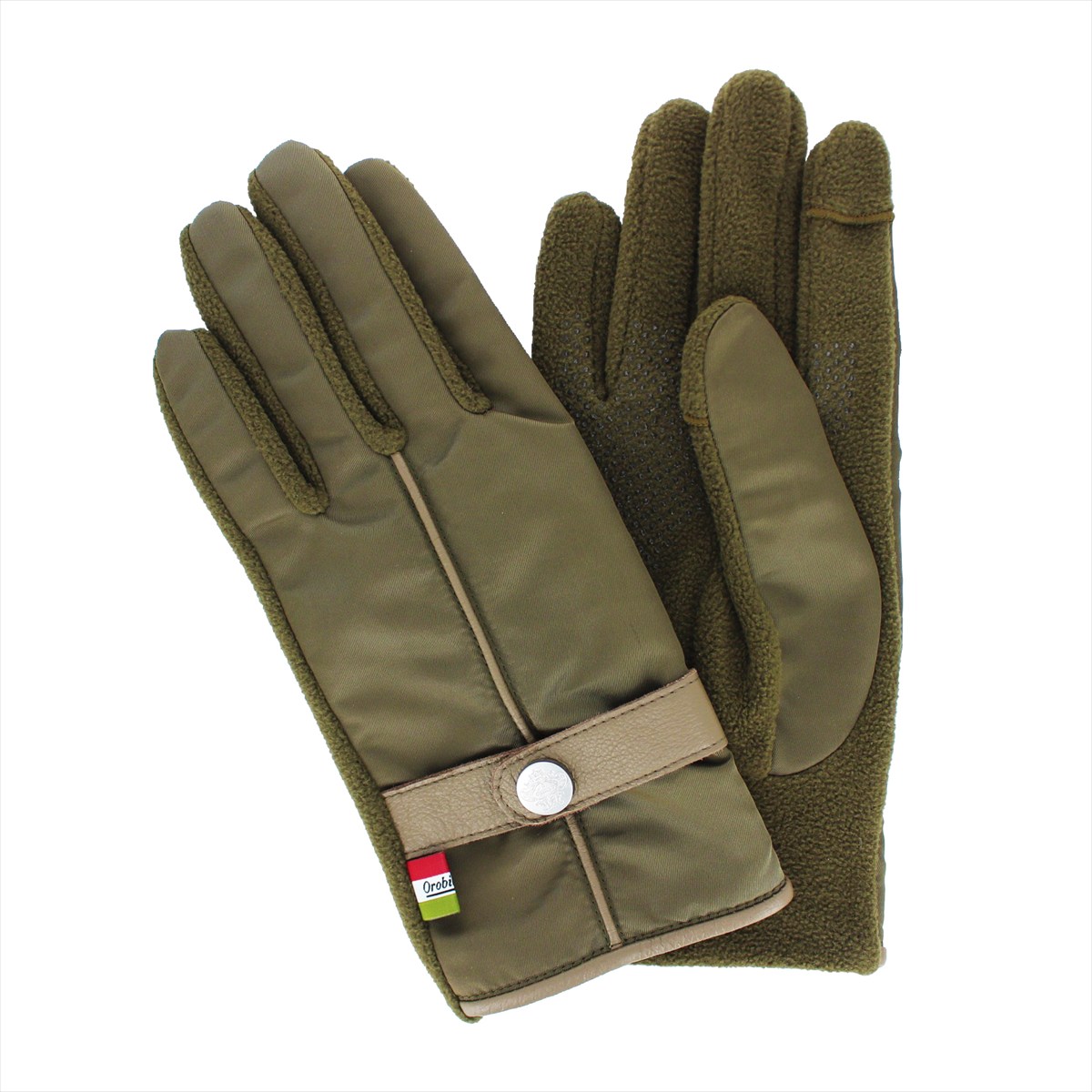 突然の雨や雪に最適な撥水生地と肌触り抜群のフリース素材を使用した、スマホ対応手袋です。トレンドのMA-1を彷彿させる、カジュアルなデザインに革を使用した、人気ブランドOrobiancoらしいトレンドとスマートさを兼ね備えたおしゃれな手袋です。必要に応じて、指先だけを簡単に出すことが出来るスタイルのスマホ対応手袋で、直接スマートフォンに触れられるため、スワイプやクリック、指紋認証もでき機能性抜群です。寒い日でも手袋を外さずにすみ、暖かいまま過ごすことが出来ます。さらに手の平側にすべり止め加工が施しており、アウトドアや自転車…様々なアクティブシーンにもお使い頂けます。