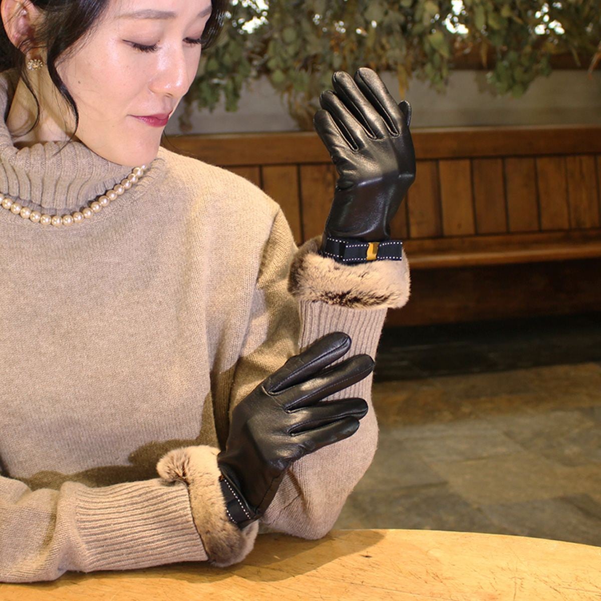 素材:羊革 リボン部分 ナイロン100% 裾部分 ラビット(レッキス) 裏地 キュプラ100%