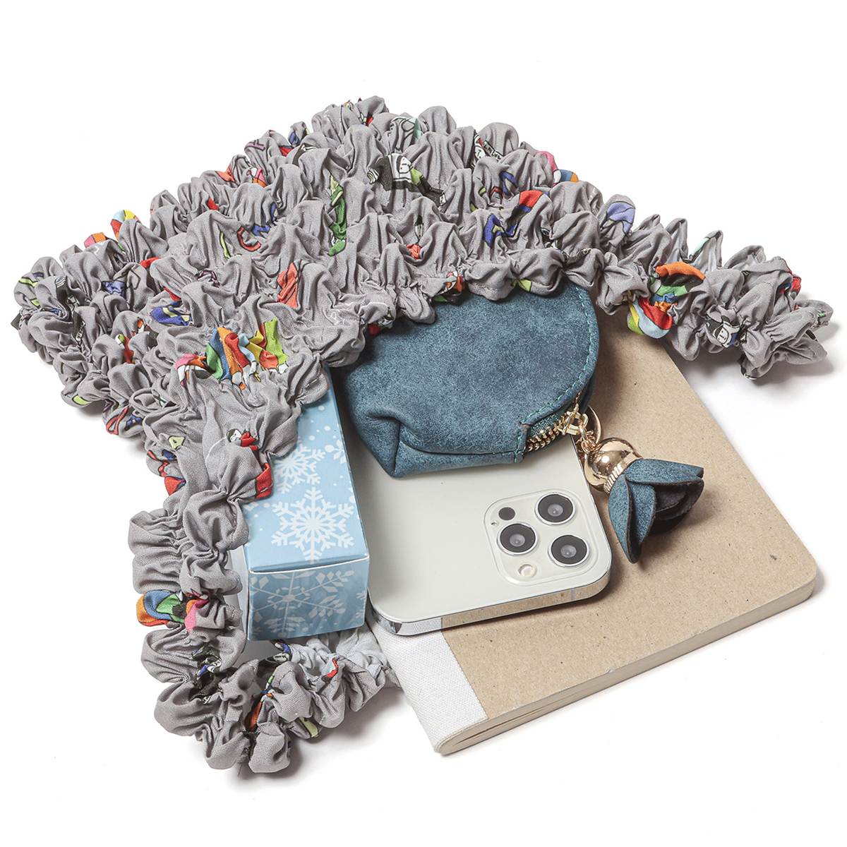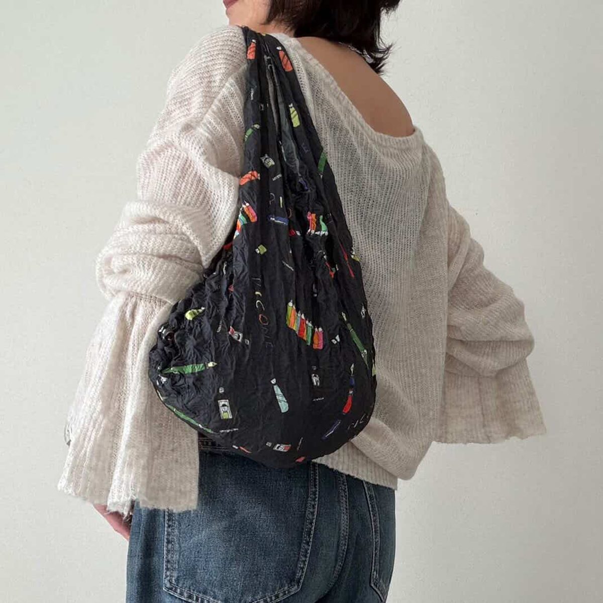 折りたたむ手間がいらず、そのままサッと収納できるエコバッグ。人気ブランドPICONE ACCESSORIイラストをプリントした、SNSで話題のドロールバッグです。クシュっとコンパクトな手のひらサイズからグーンと伸びてA4サイズも入る大きさに。わずか40gという驚きの軽さで、持ち歩いても負担にならない超軽量エコバッグ。バッグの中に入れてもかさばらず、必要なときにサッと取り出せる手軽さが魅力のアイテムです。