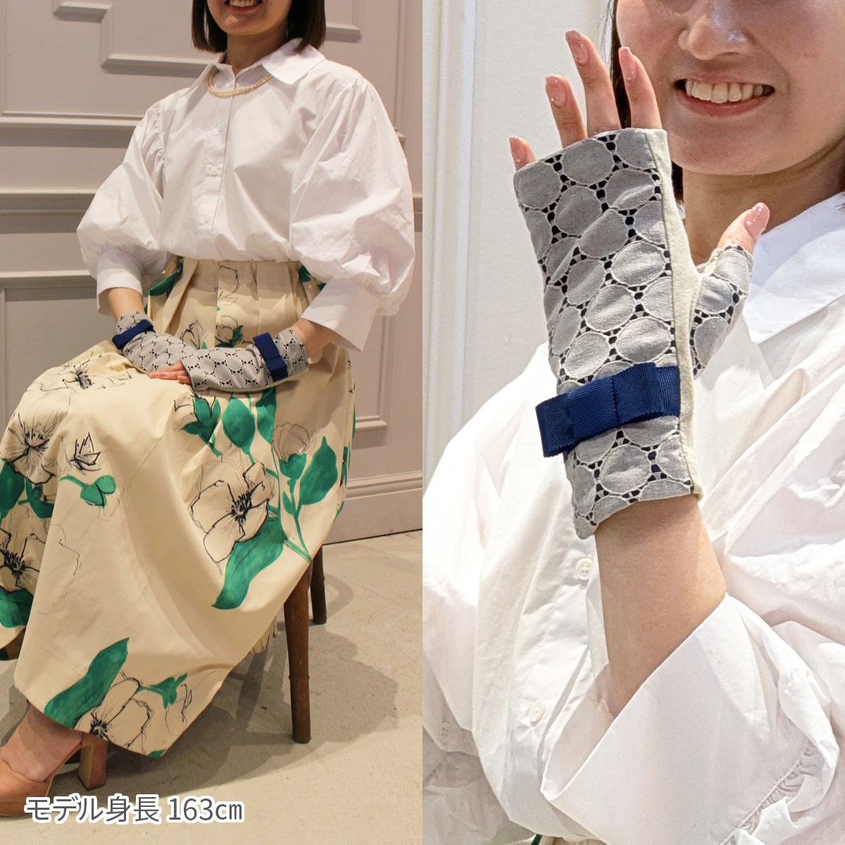 ラウンドレースのレイヤードに大きなグログランリボンがポイントの、エレガントでおしゃれなショート丈のUVカット手袋です。ご家庭で洗えるので暑い夏でも快適にお使い頂けます。手袋を装着したまま、細かい作業やコンビニでのキャッシュレス決済時にも慌てない指紋認証にも対応しているスマートフォンやタッチパネルがそのまま使える指先フリータイプです。 人気ブランドアルタクラッセカプリガンティらしい纏う優雅とここちよさを追求したアームカバーです。お誕生日プレゼントや母の日ギフトにもおススメの逸品です。