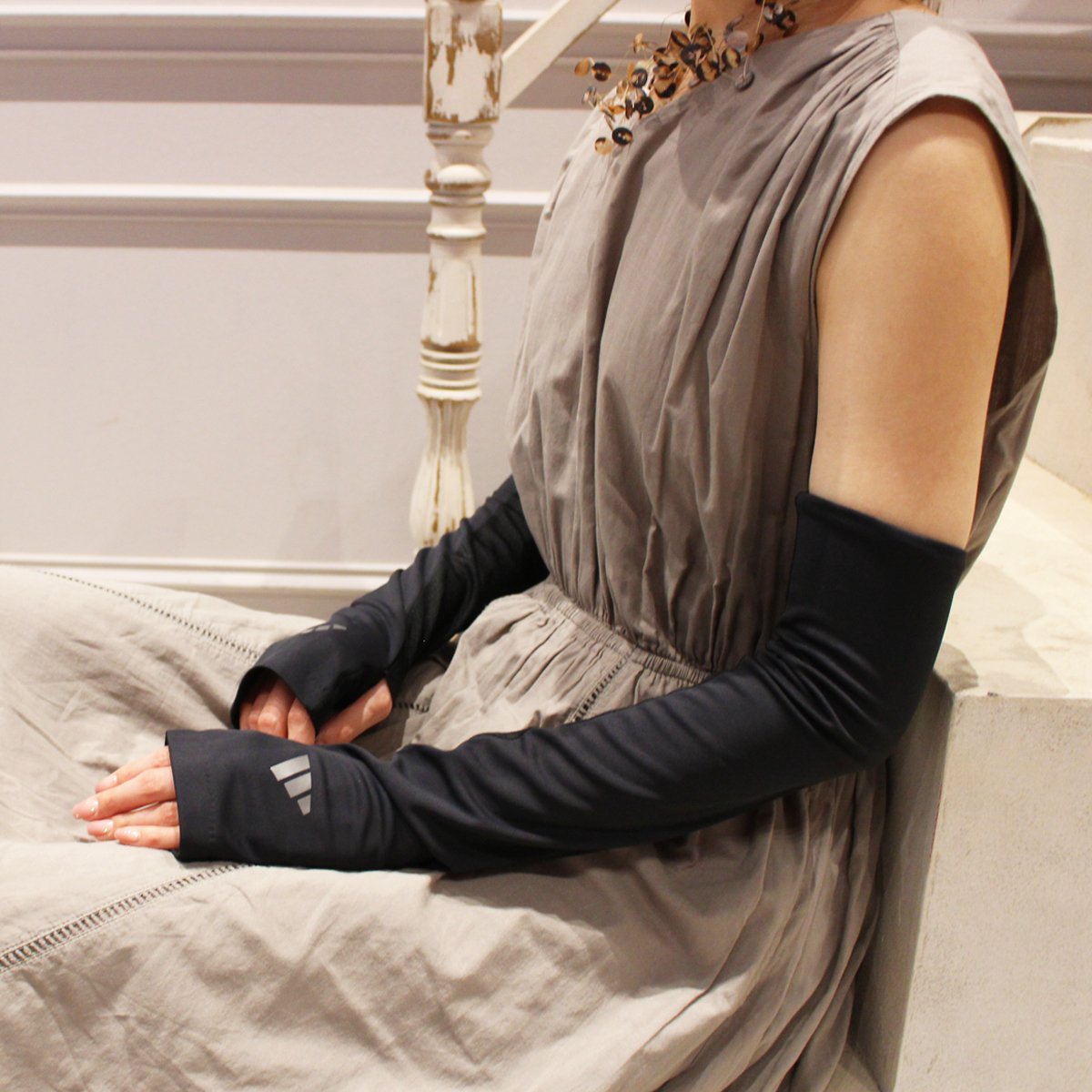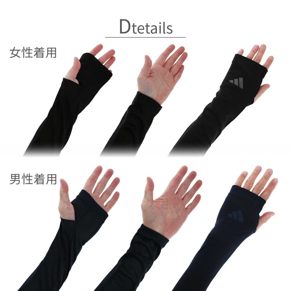 人気ブランドadidasのUPF50+,UVカット率95%以上の高遮蔽、ロング丈のレディース、メンズ、ユニセックスにお使い頂けるUVカット手袋です。吸水速乾素材は運動やスポーツ時、暑い夏も快適にご使用いただけます。手の平側がメッシュになっており、通気性が良く蒸れにくく、ご家庭で洗えるので汗をかく季節も清潔にお使い頂けます。手袋を装着したまま、細かい作業やコンビニでのキャッシュレス決済時にも慌てない指紋認証にも対応しているスマートフォンやタッチパネルがそのまま使える指先フリータイプです。親指部分にスリットがある仕様で、親指を穴に通して甲までしっかり日焼け対策が出来るUVカット手袋に、穴に通さずアームカバーとして…お好みの着用方法でお使い頂けます。二の腕部分はずれ落ちにくい仕様となっているのも嬉しいポイント!